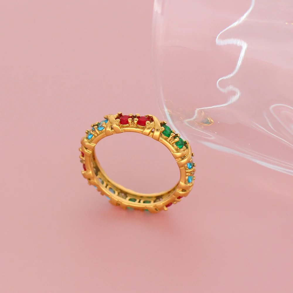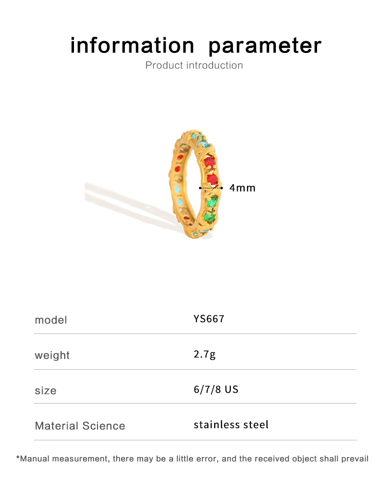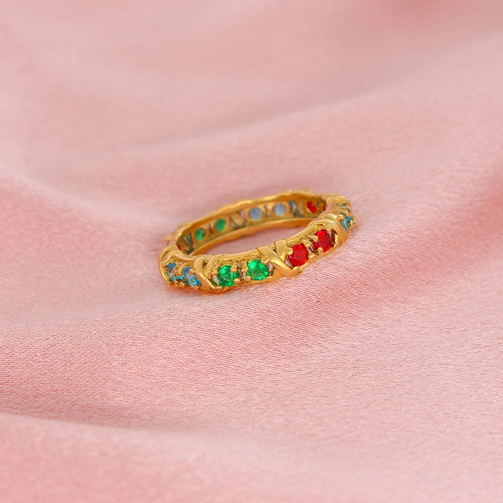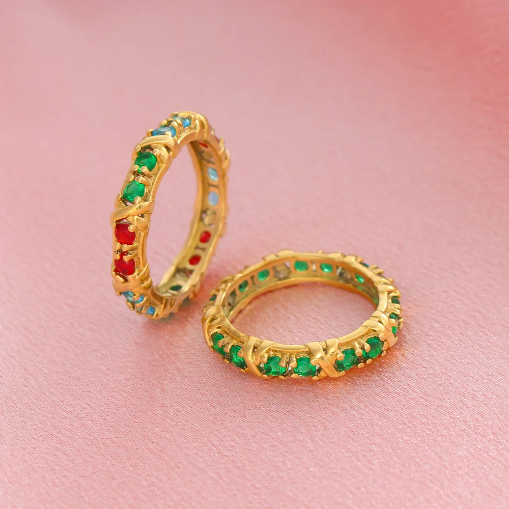 FANJIN Luxury Icy Out Bling Fashion Cubic Zircon Rings For Women Stainless Steel Rainbow CZ Paved Finger Wedding Jewelry