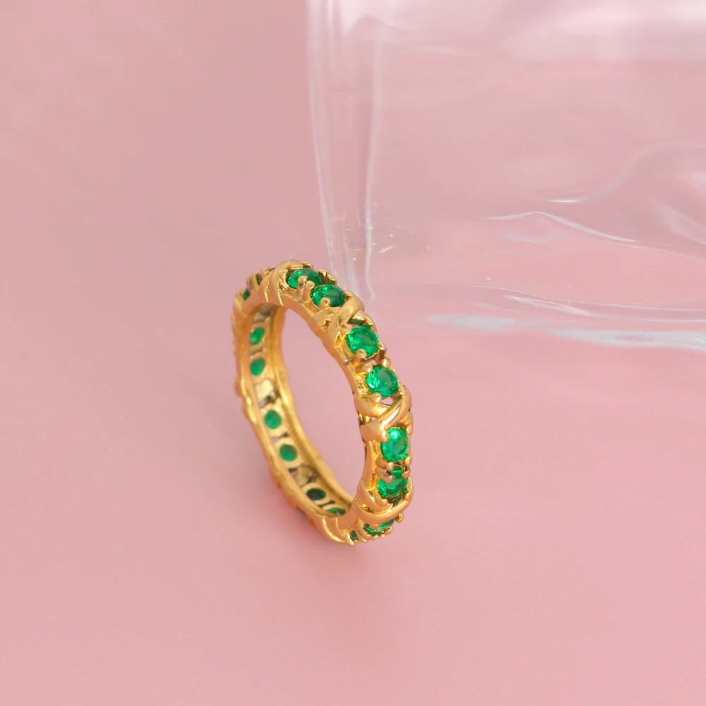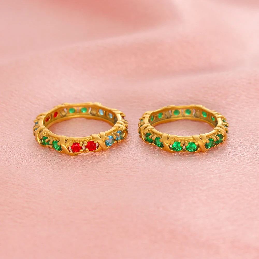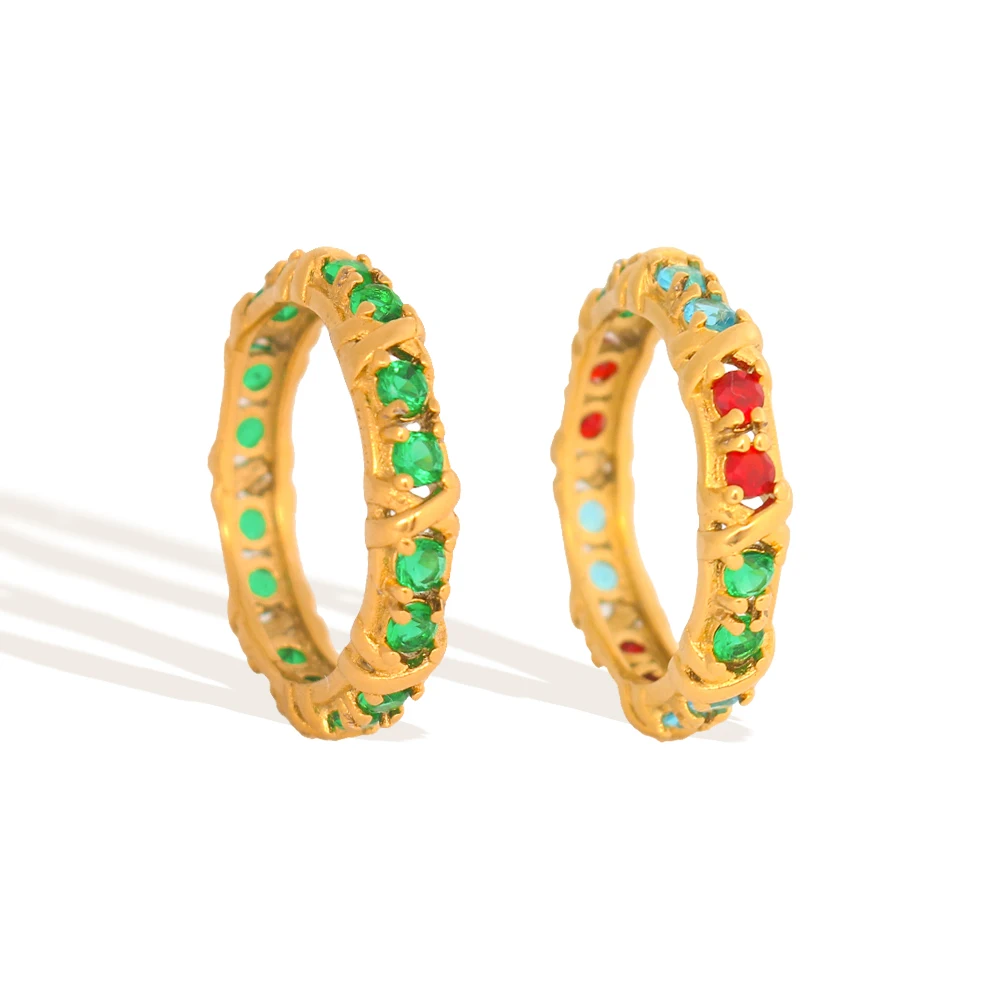 FANJIN Luxury Icy Out Bling Fashion Cubic Zircon Rings For Women Stainless Steel Rainbow CZ Paved Finger Wedding Jewelry