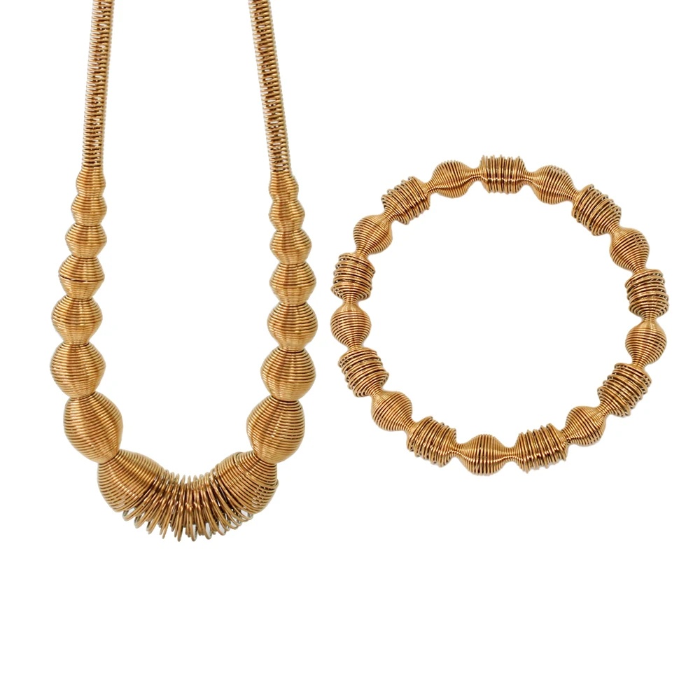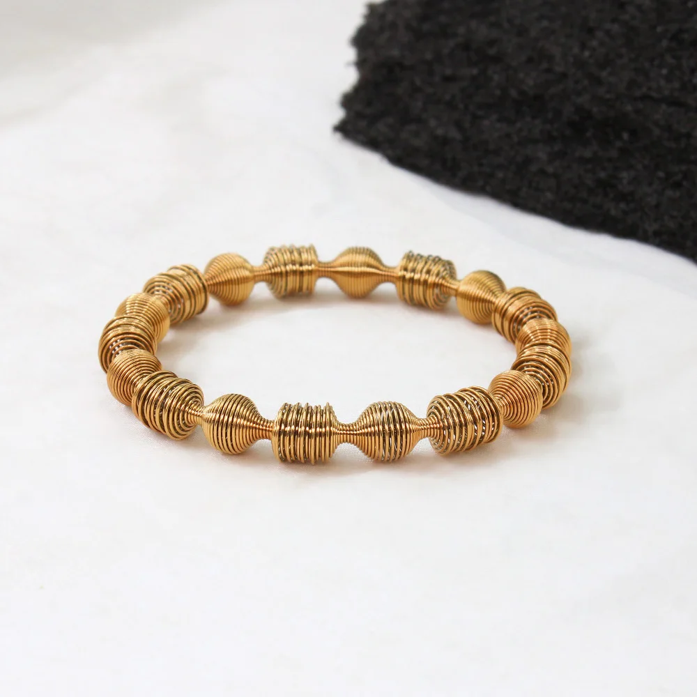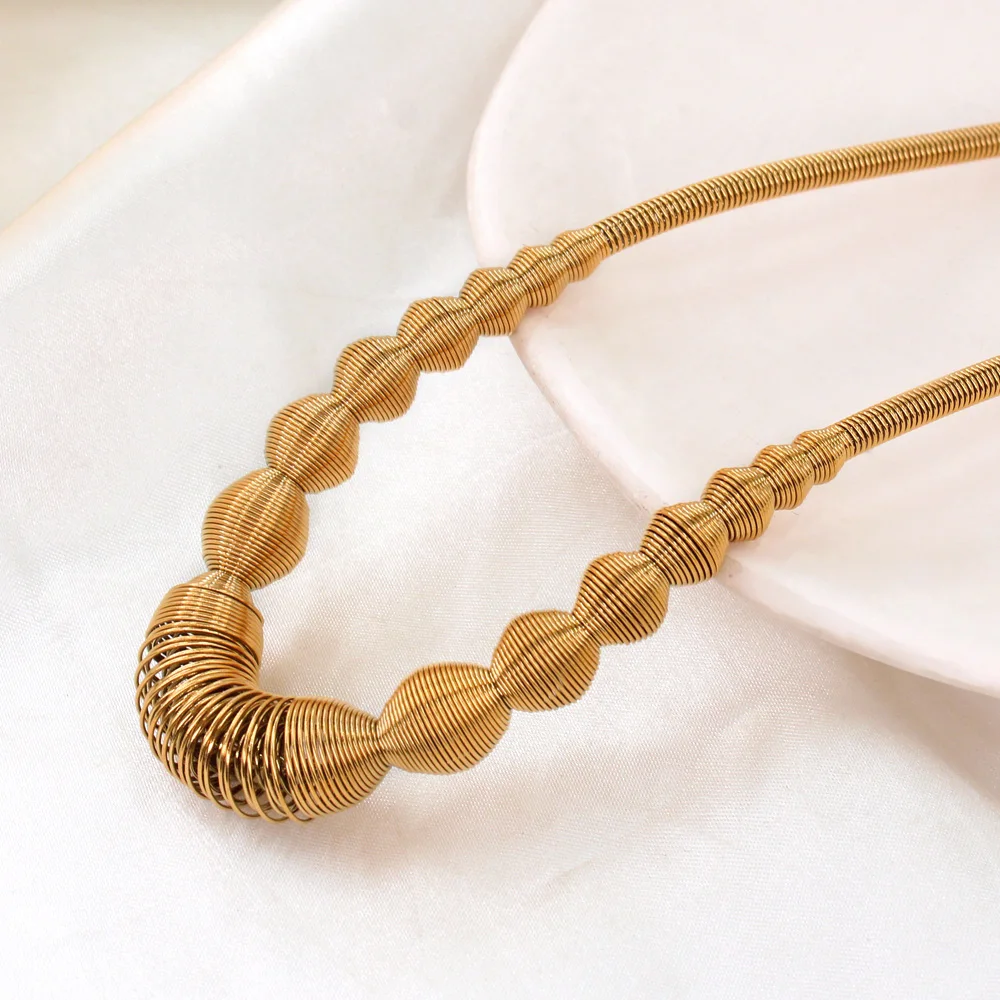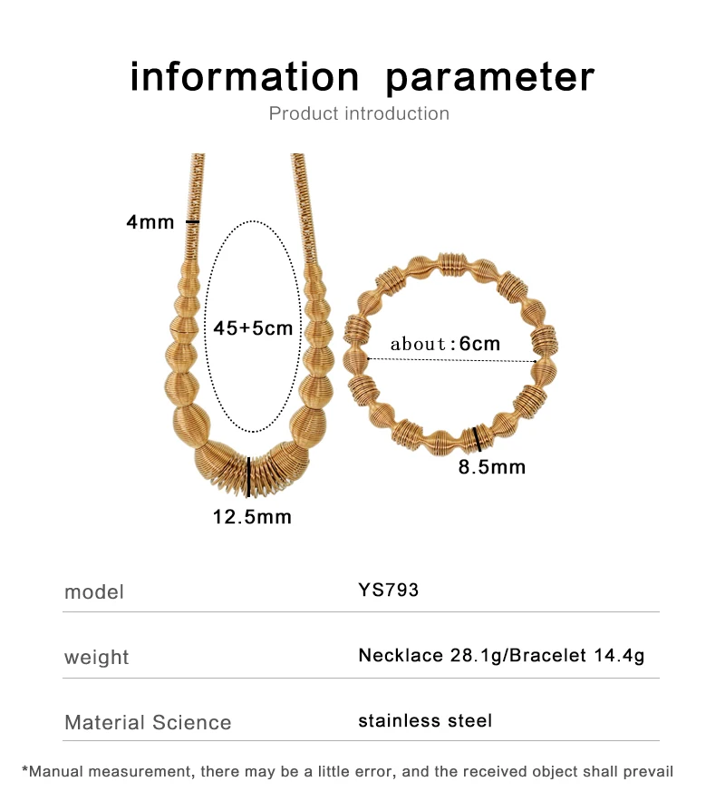 FANJIN Stylish Txetured Elastic Stainless Steel Jewelry Set Temperament Women's Gold Color Daily Wear Accessories Wholesale