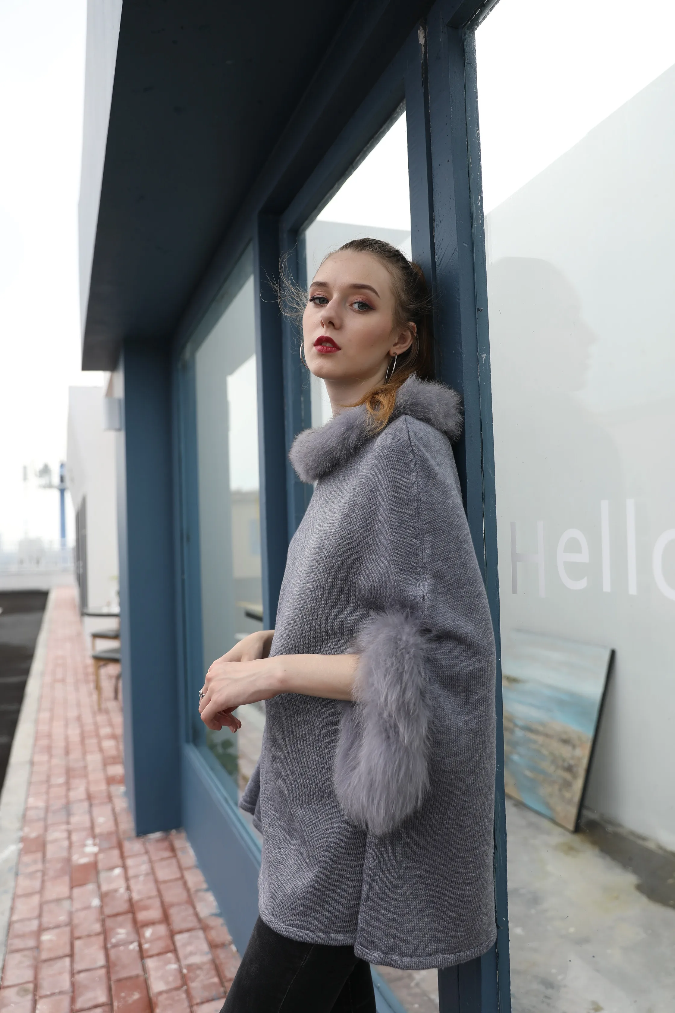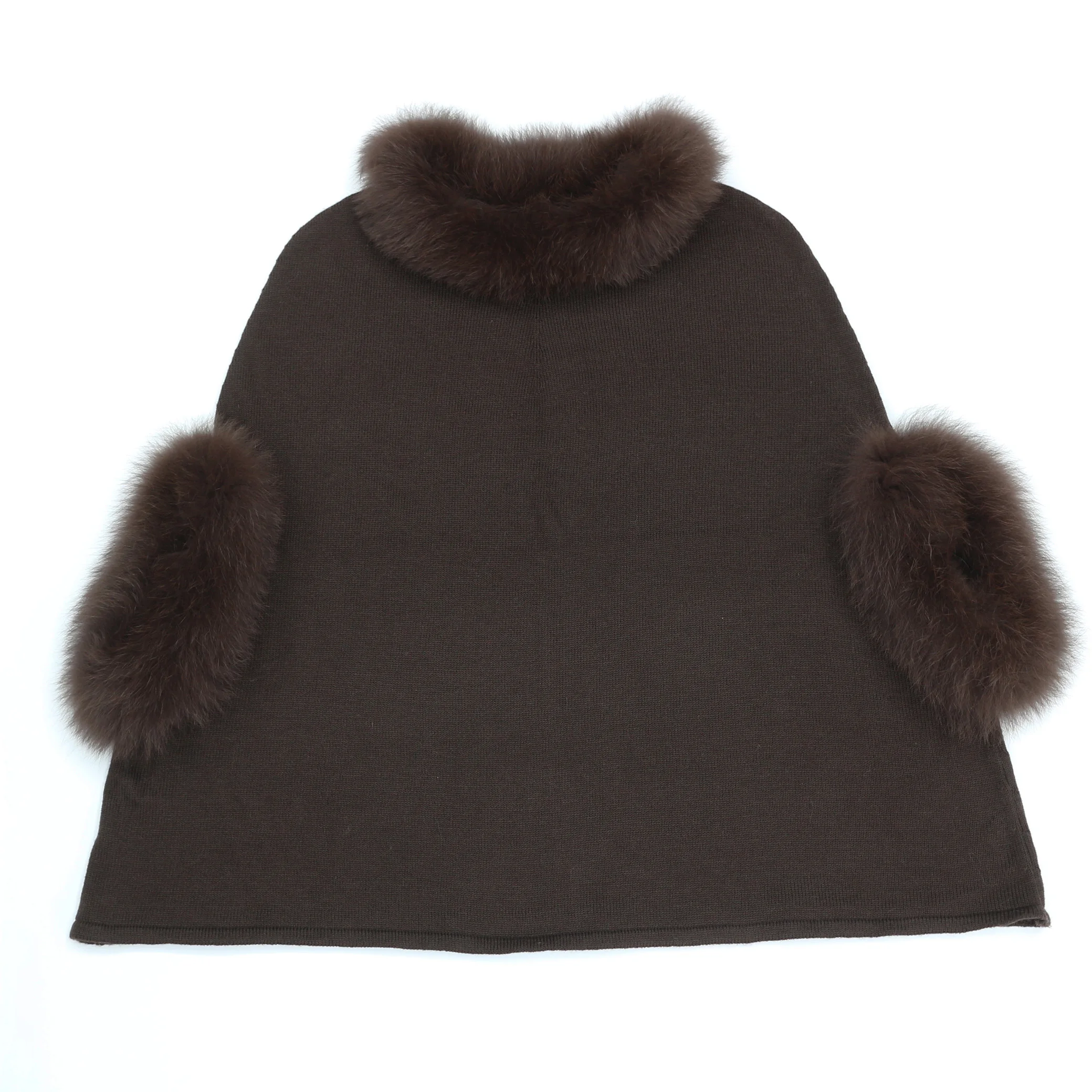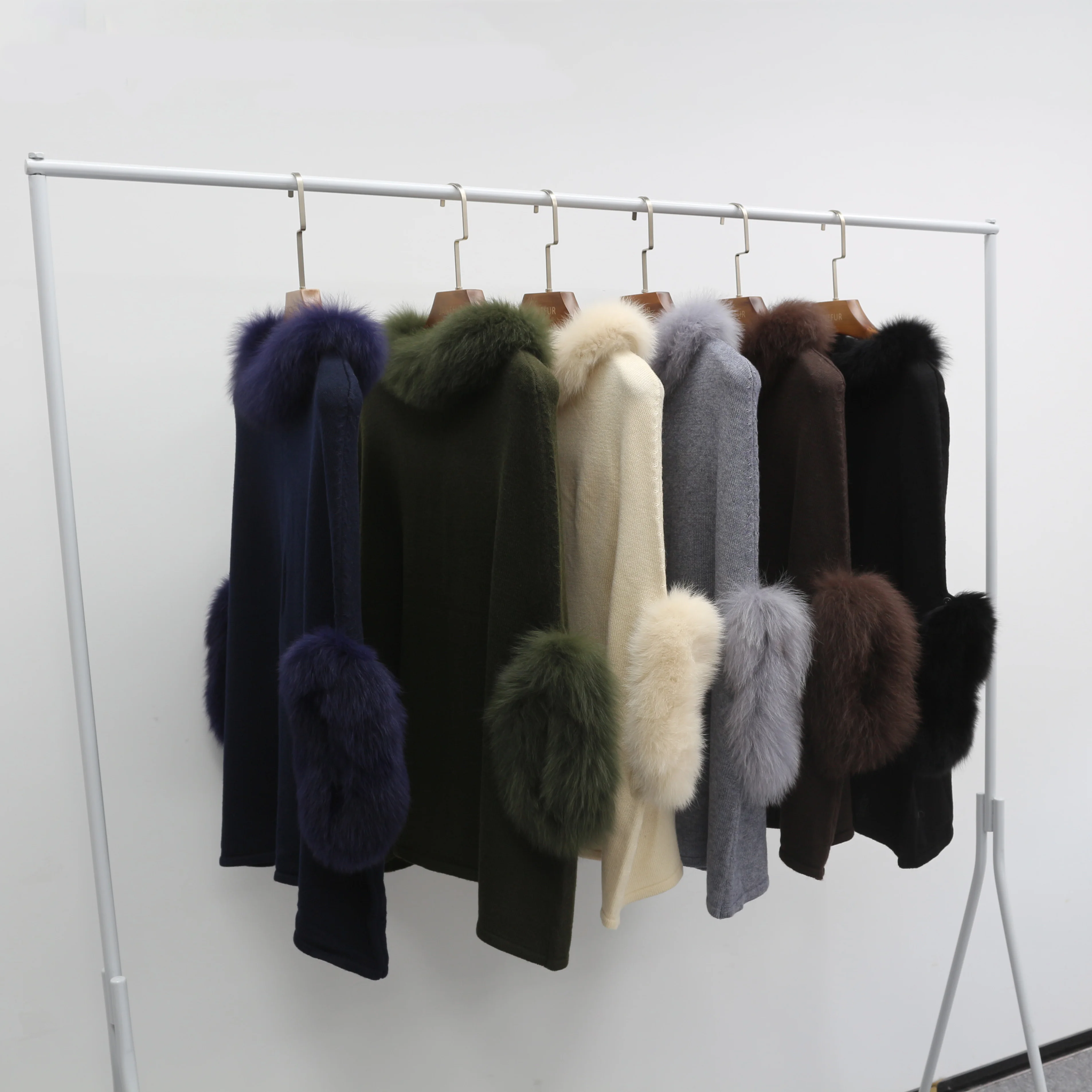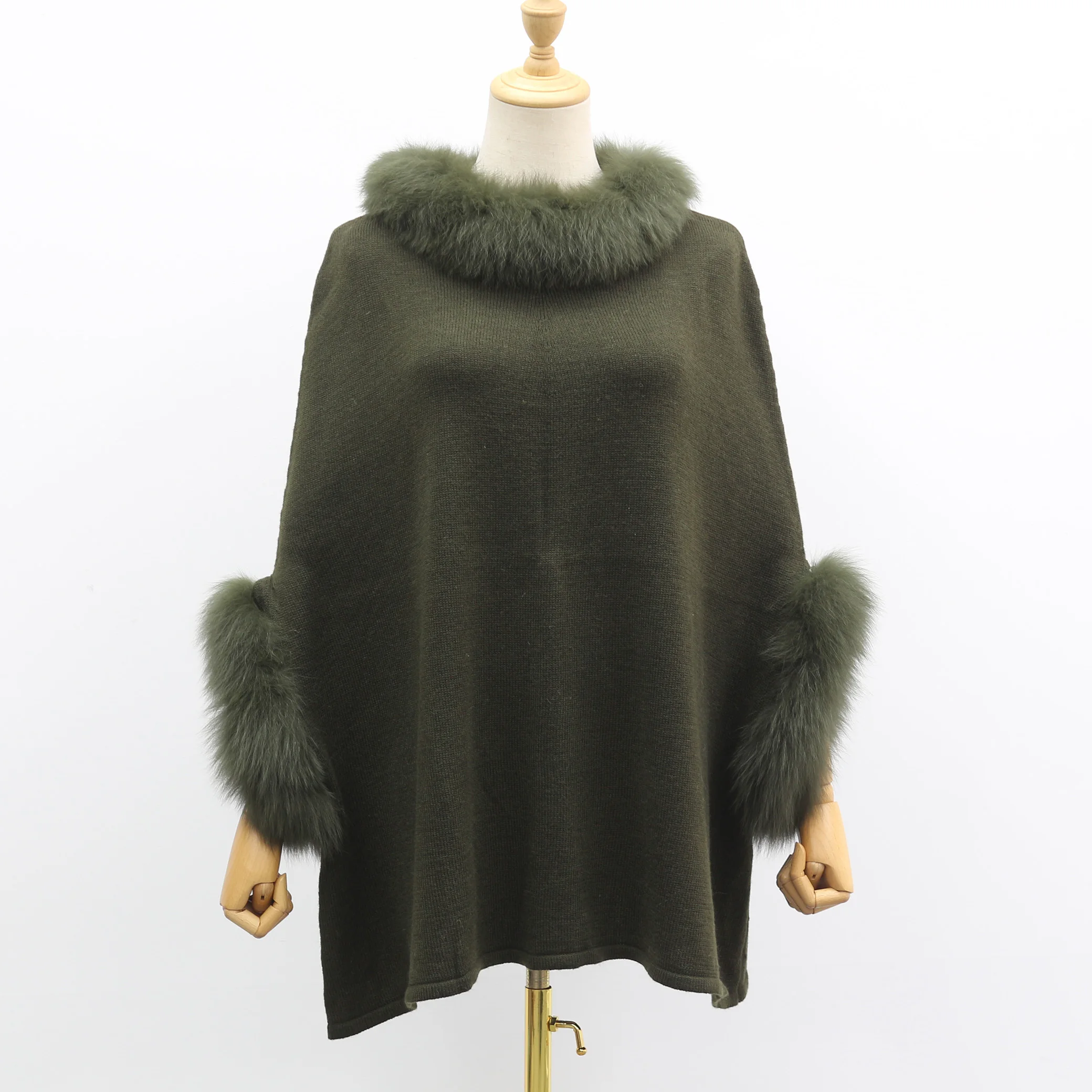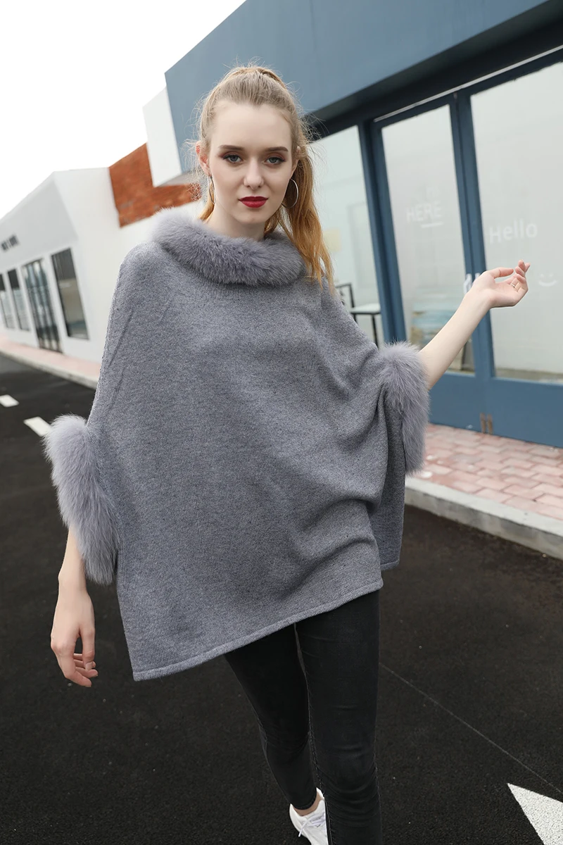 High quality Real Wool Cashmere Winter stylish Pullover knit sweater with real fox fur trim for women