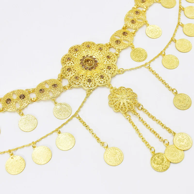Fashion Coin Tassel Flowers Waist Chain Belly Turkish Gypsy Body Chain Dance Jewelry Bohemian Vintage Gold Plated