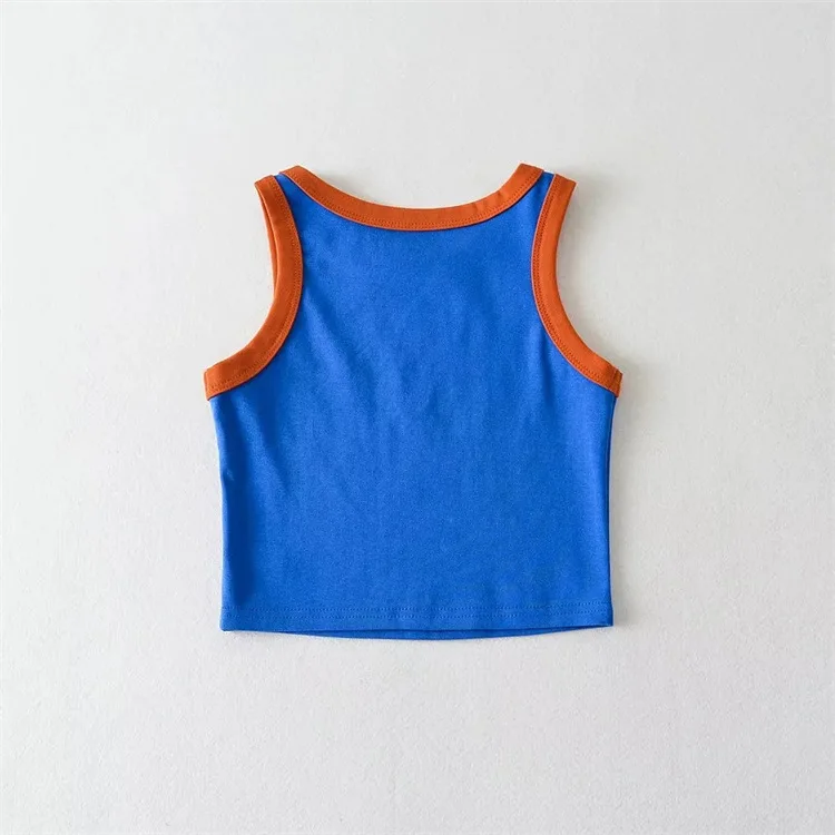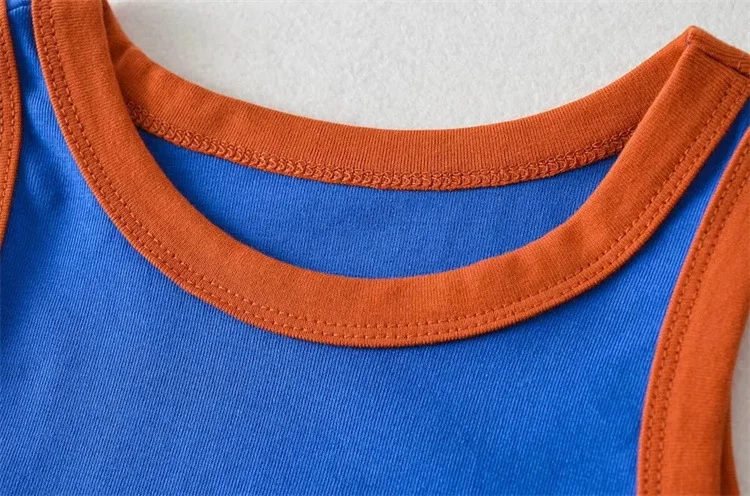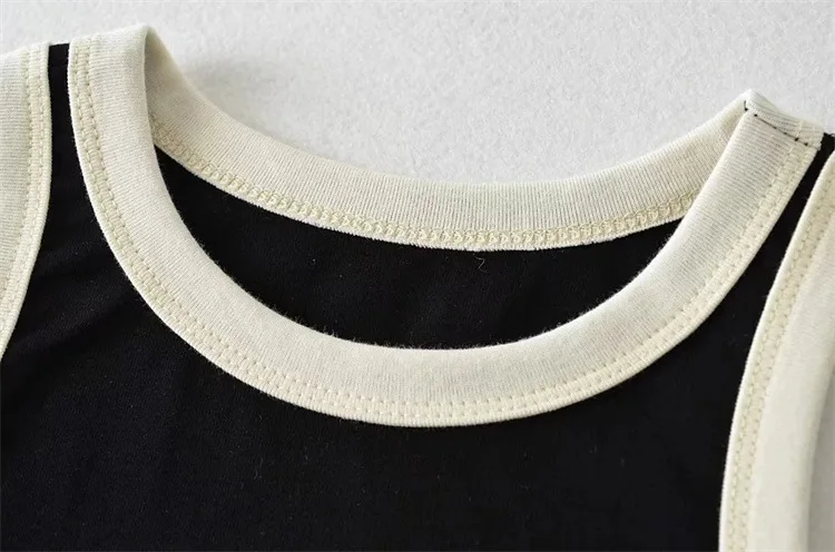 Fashion Contrast Color 4 Color Wide Strap Crew Neck Sleeveless Pullover Cute Crop Top for Women