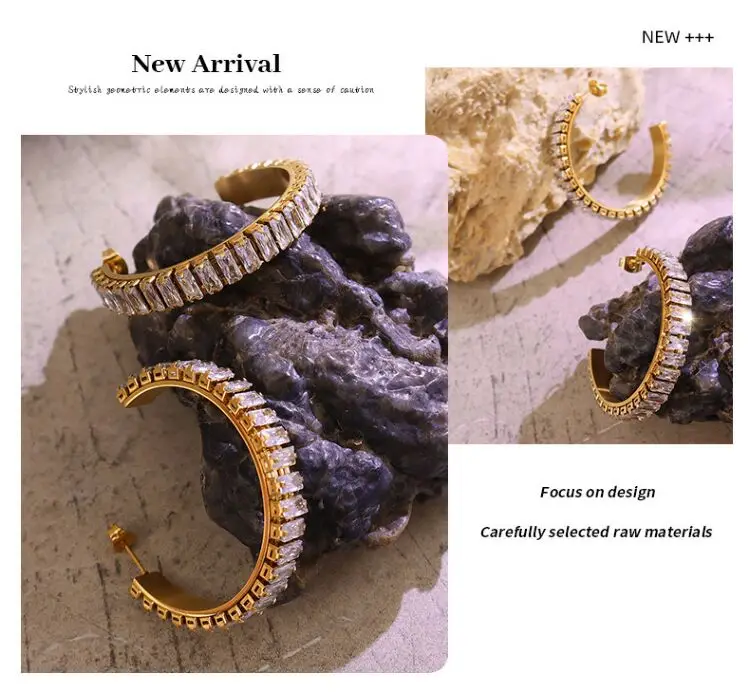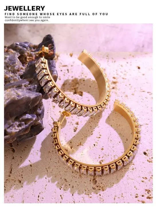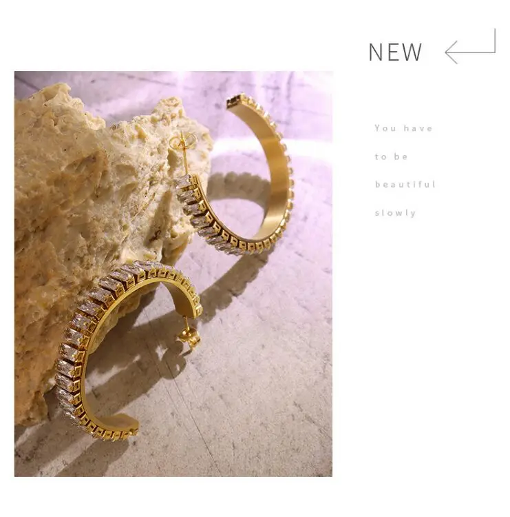 Fashion Creative C Shape Stainless Steel Earrings 18K Gold Plated Women's Earring Jewelry