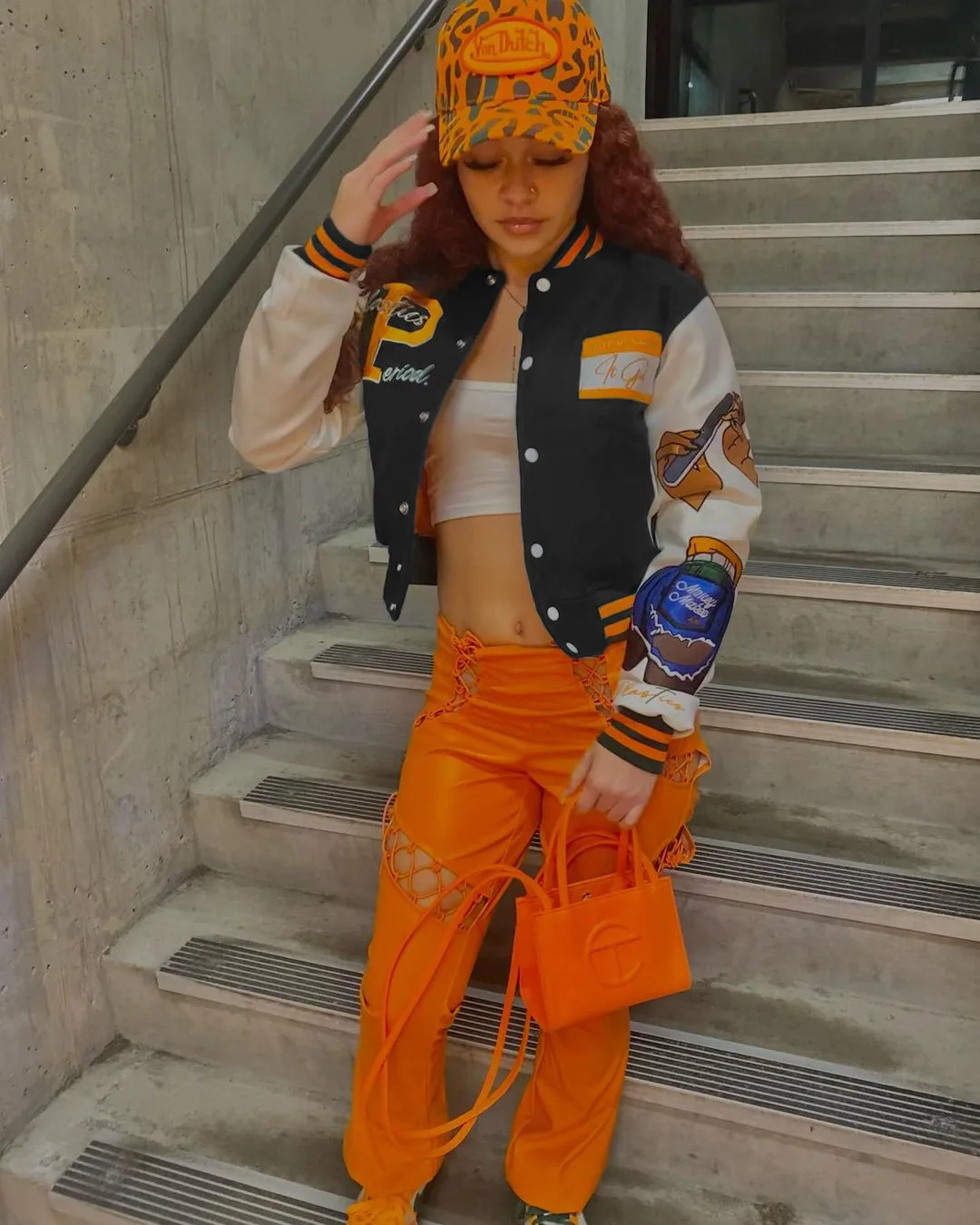 Fashion embroidery women's varsity jacket wholesale with polyester new style