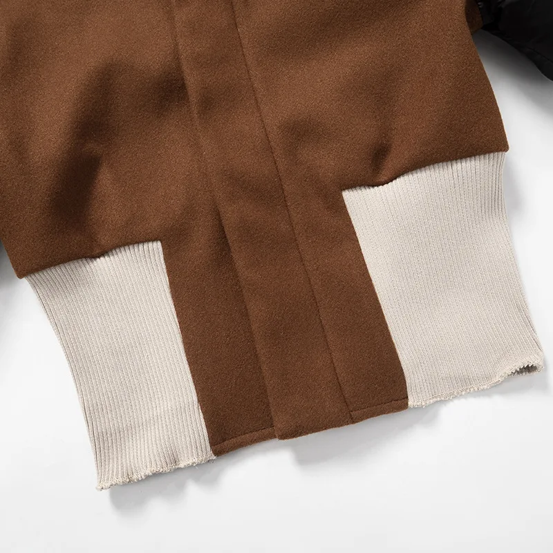 Fashion Fall Autumn Patchwork Casual Long Sleeve Woolen Short Crop Bomber Jacket Winter Coat For Women