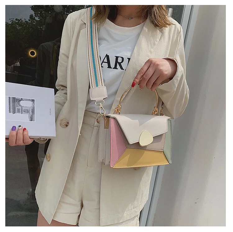 Fashion famous brand designer wide shoulder straps handbag contrast color women fashion hand bags luxury shoulder bags 2023