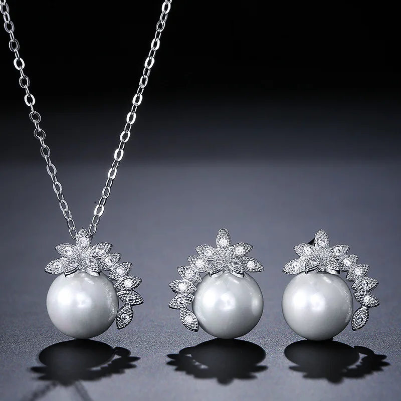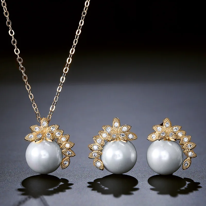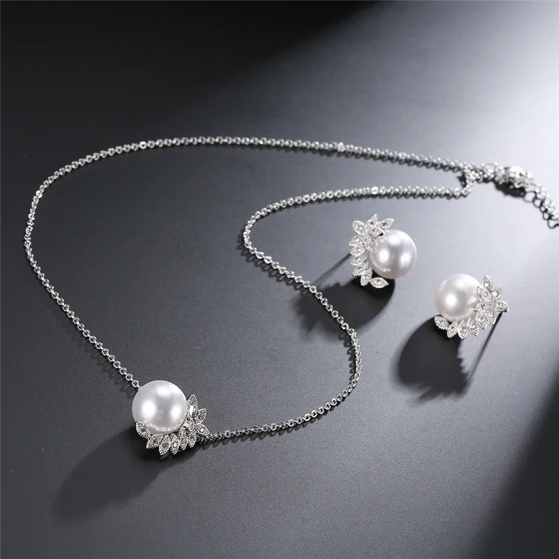 Fashion Fine Jewelry Wedding Copper Material Luxury High Quality Zircone pearl necklace set For Bride