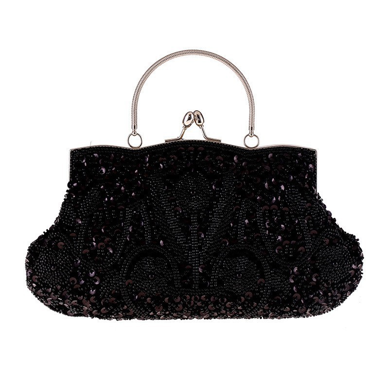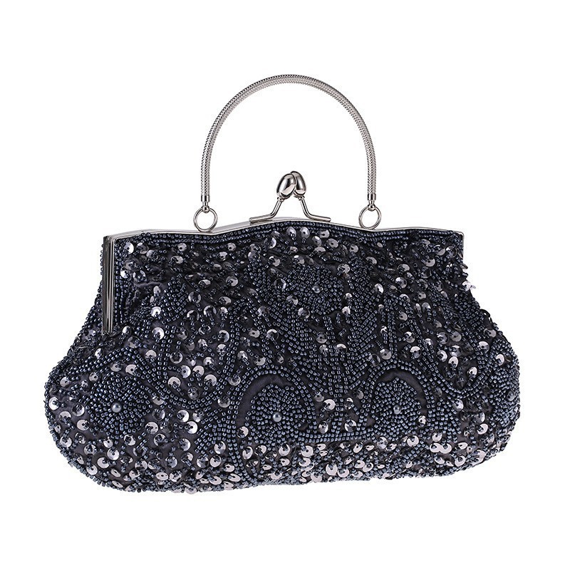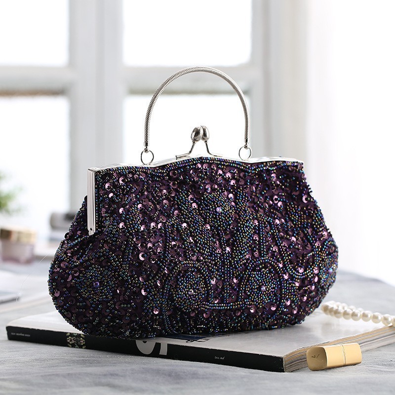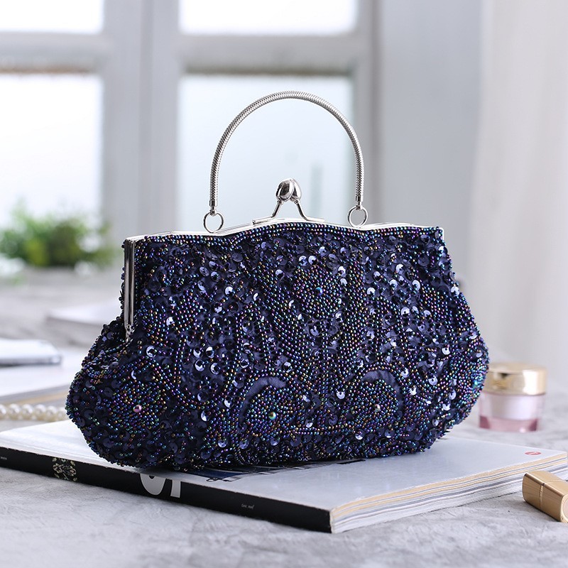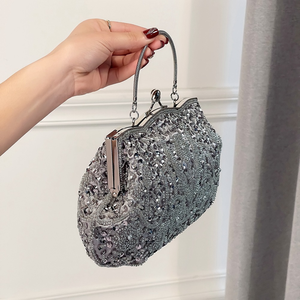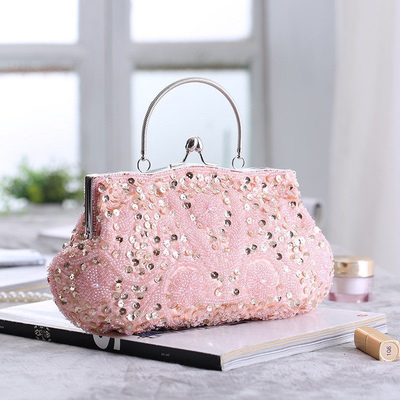 Fashion Glitter Clip Evening Purse Bead Embroidery Clutch Crossbody Bag Women Banquet Bridesmaid Wedding Party Tote Shoulder