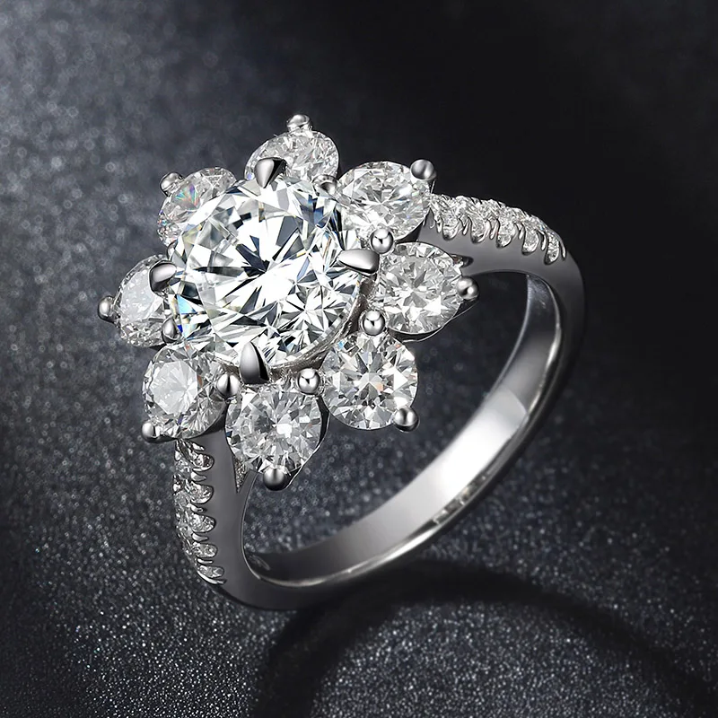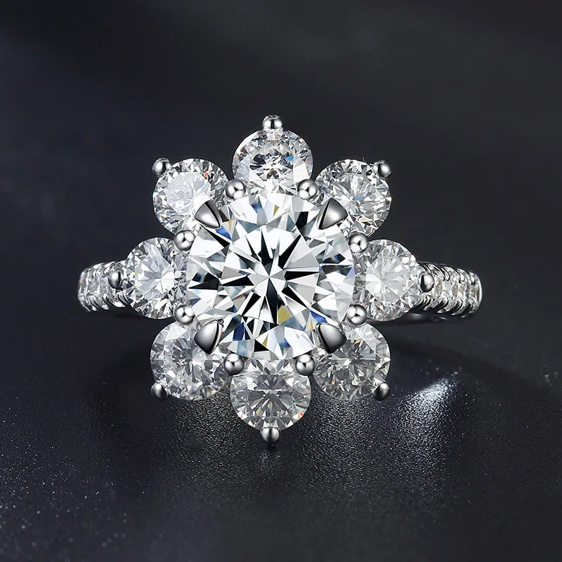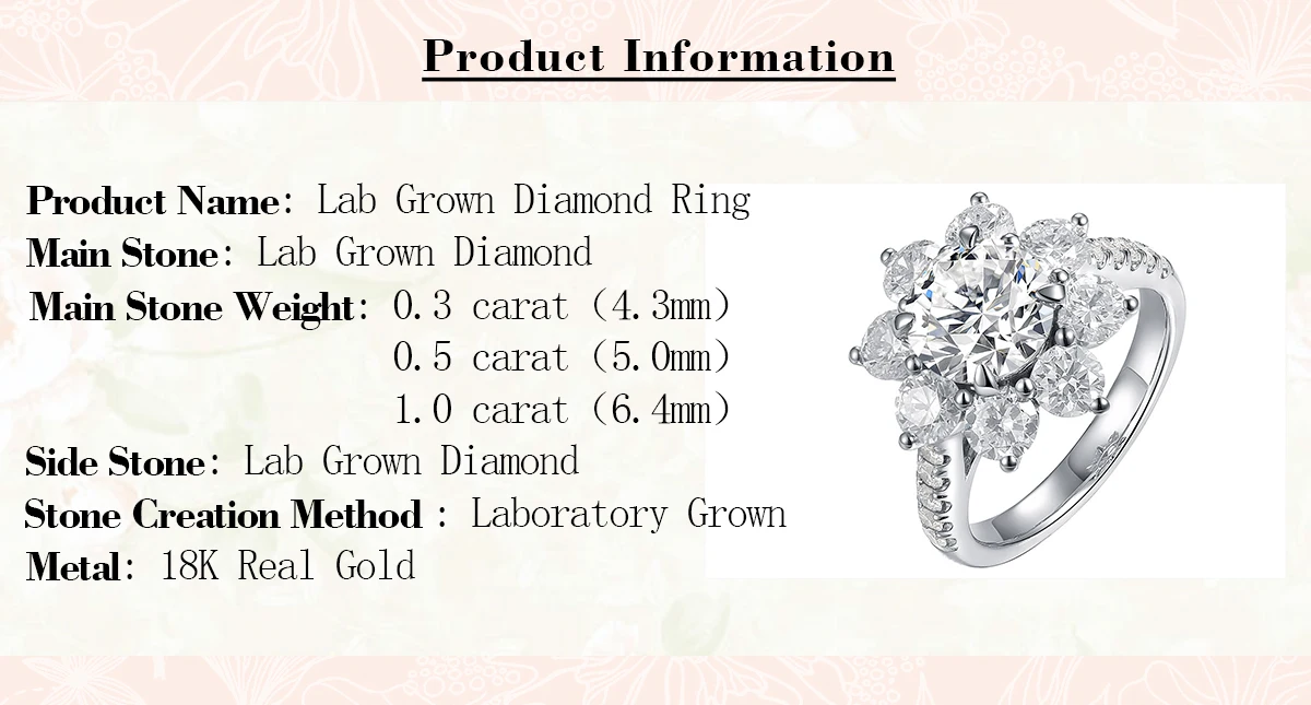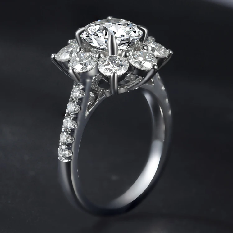 fashion hot sale 18k real gold jewelry lab grown cvd / hpht diamond sun flower ring