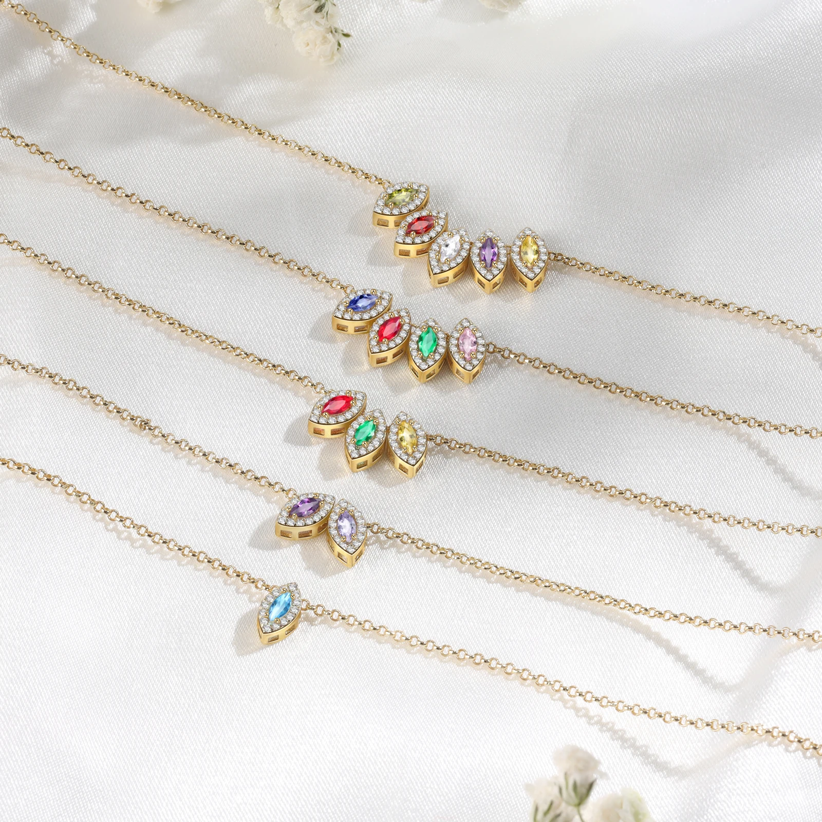 Fashion Jewellery Copper Rhombic Shaped Cubic Zirconia Necklace 18K Gold Plated Dainty Women Necklace