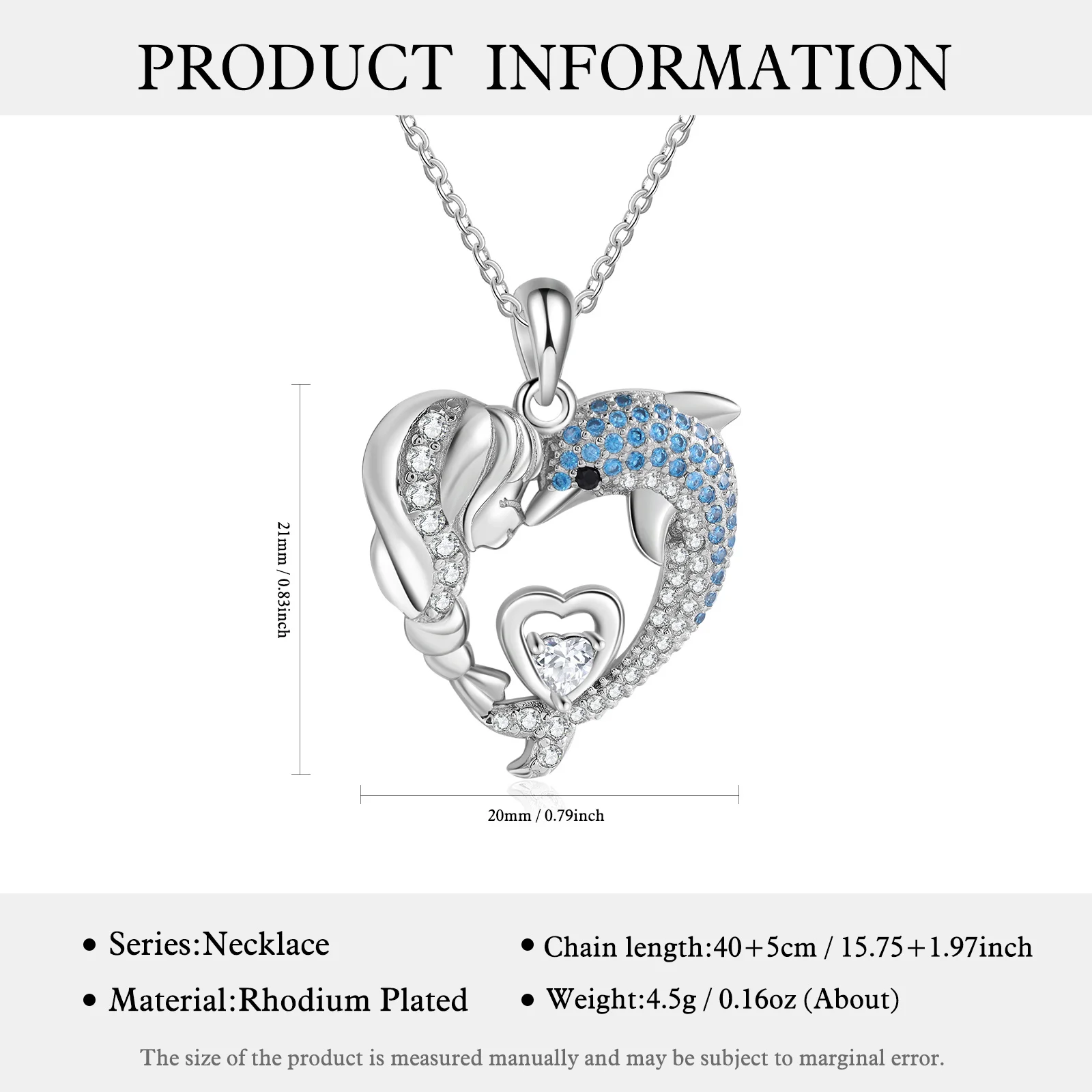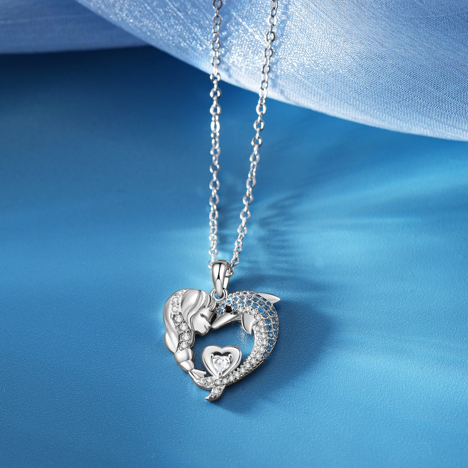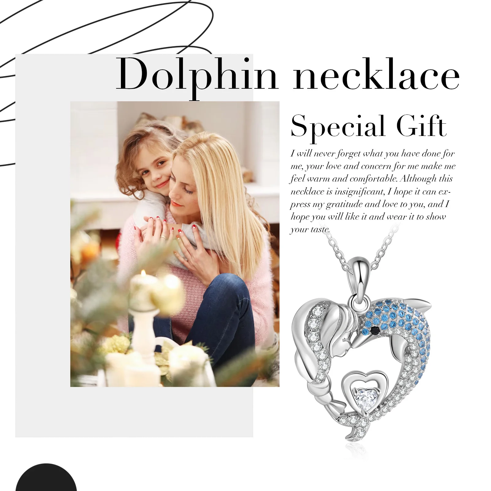 Fashion Jewelry Female Girl and Cute Animal Dolphin Choker Necklace Heart Shaped Zirconia Heart Pendant Necklace