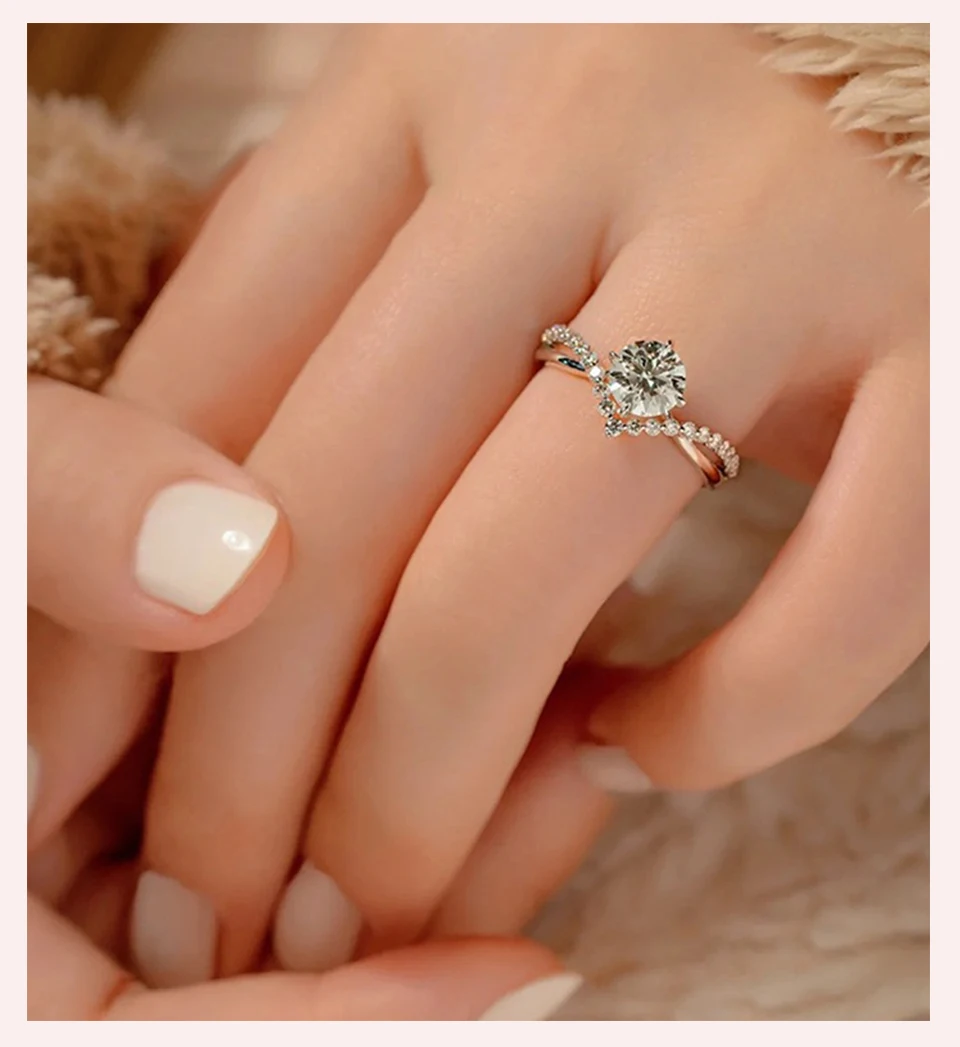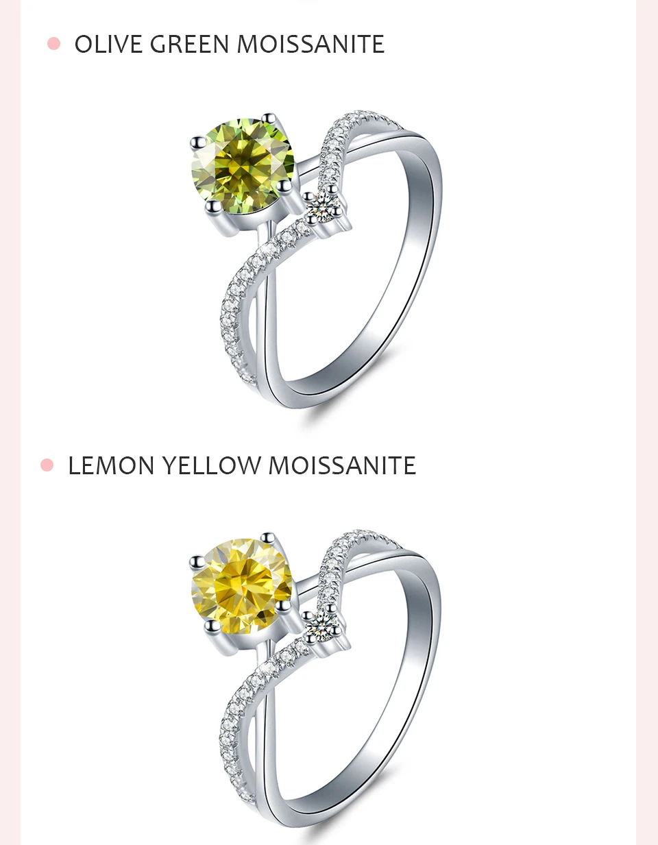 Fine Jewelry Gra Colored Diamond Moissanite 2 Row Crown Ring V-Shaped Real 925 Silver 0.5 ct Carat VVS For Women Wedding