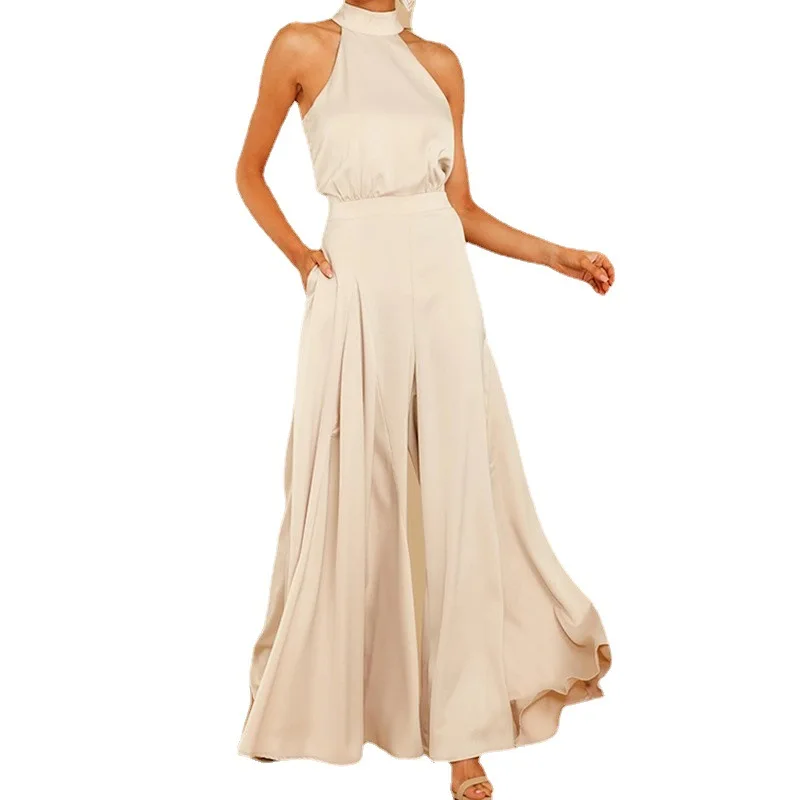 fashion jumpsuit women spring summer off-the-shoulder high-waist one-piece wide-leg pants women