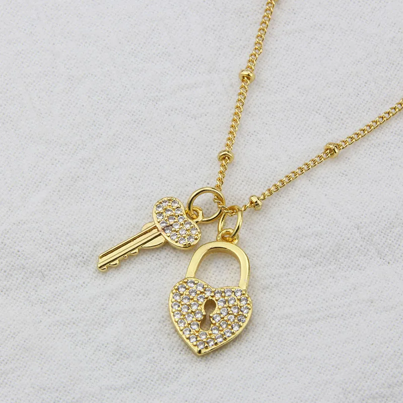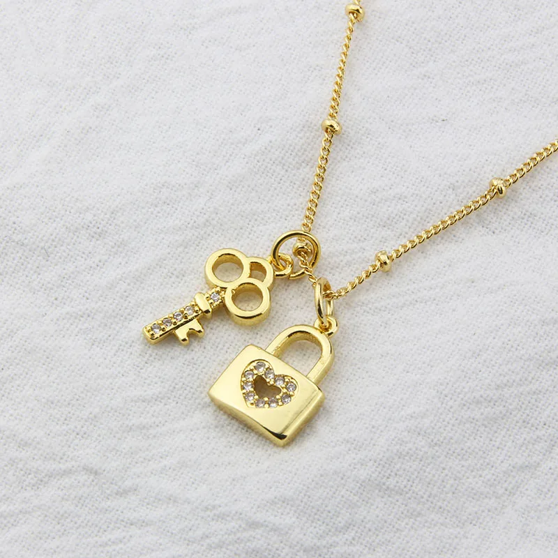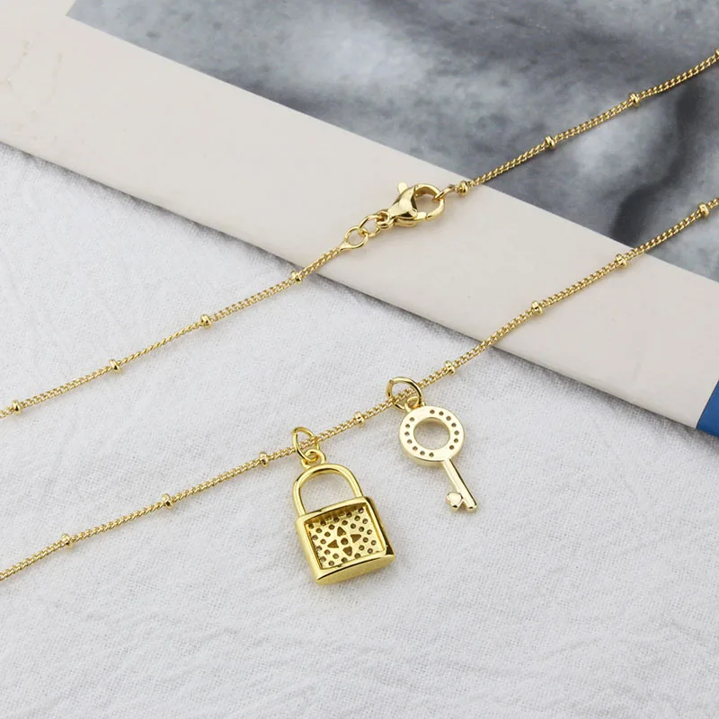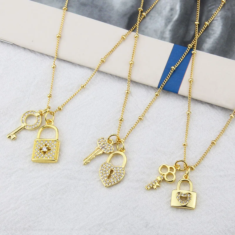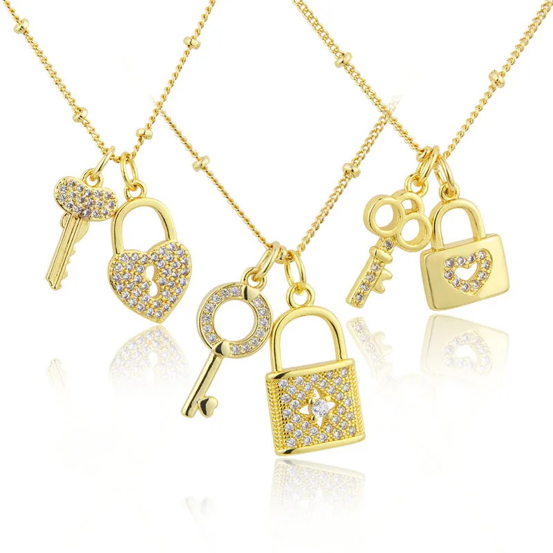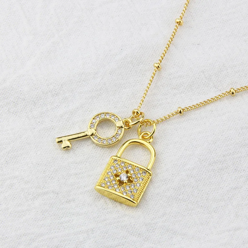 Fashion Key Lock Pendant Necklace 18K Gold Plated Copper Choker Inlaid Cubic Zirconia Clavicle Chain Jewelry
