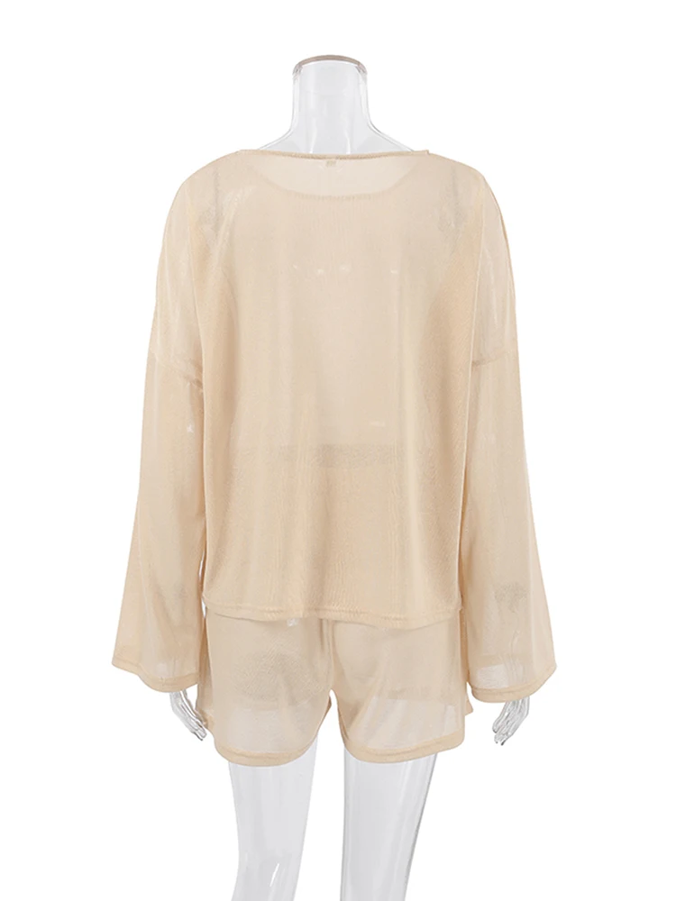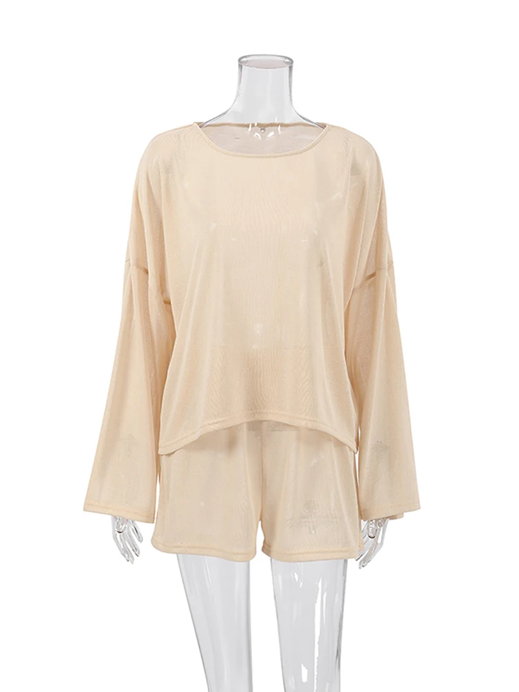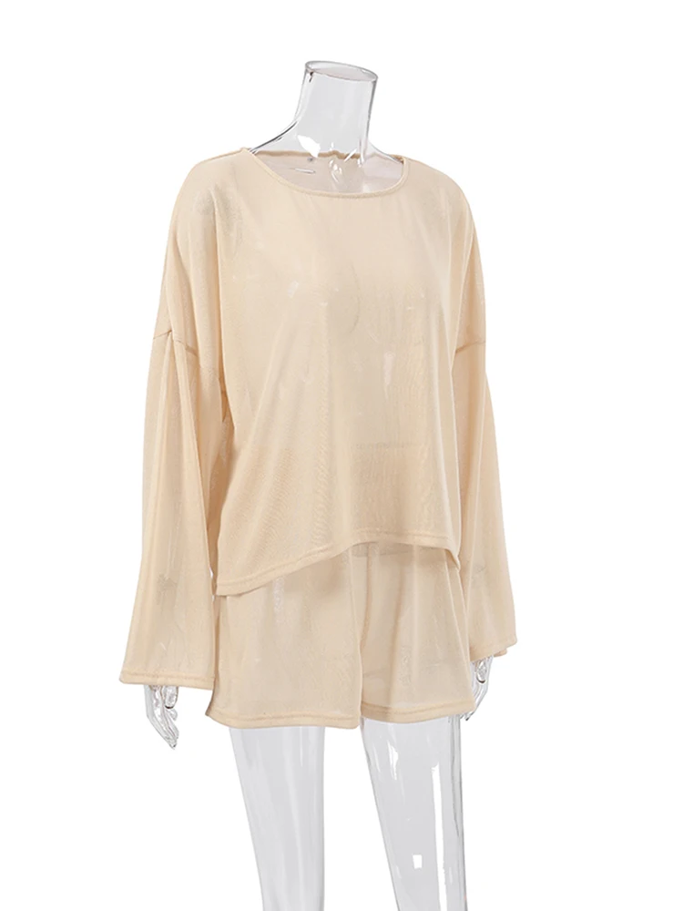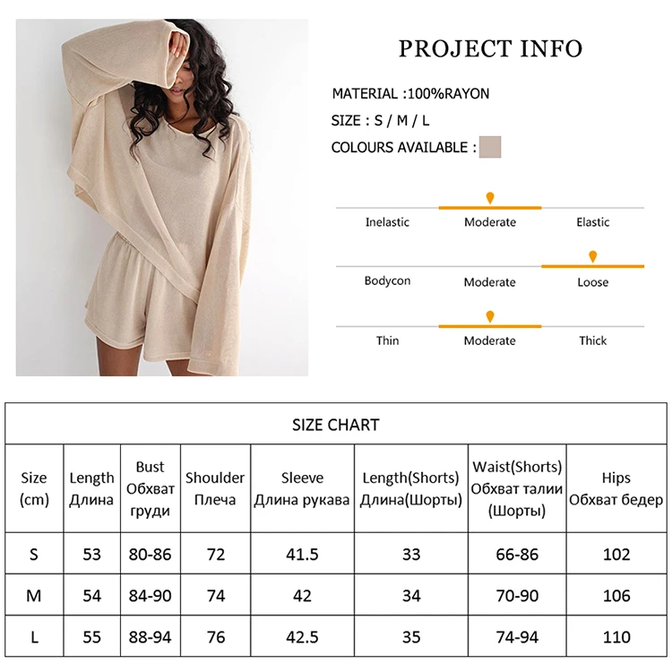 Fashion Knitted Sleepwear Female Set Casual Khaki Loose Pajamas For Women 2 Piece Sets Long Sleeve O Neck Homewear Nightwear