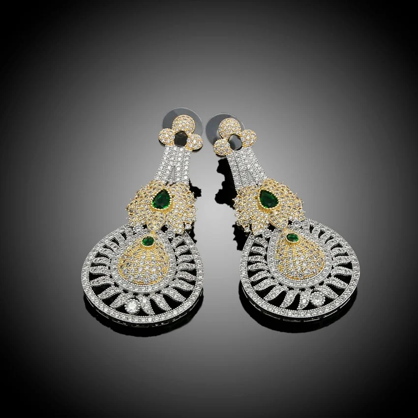Image for :Fashion latest Diamond zircon wedding party bridal gift copper plated gold hot sale factory wholesale jewelry set