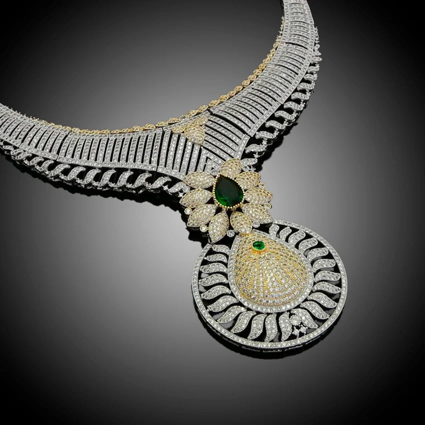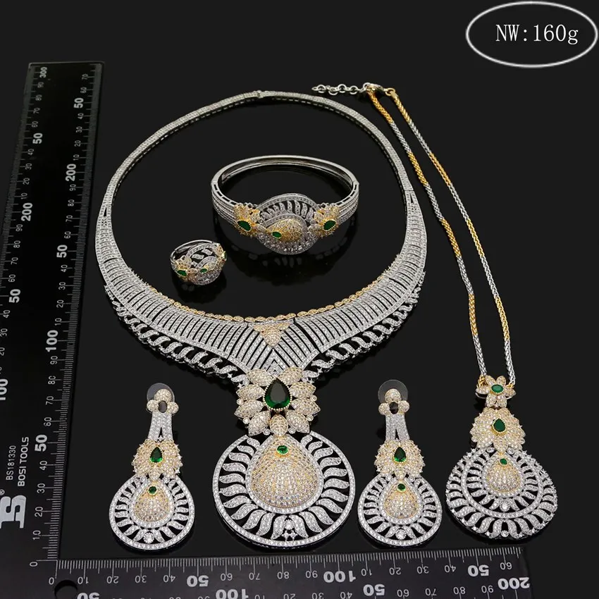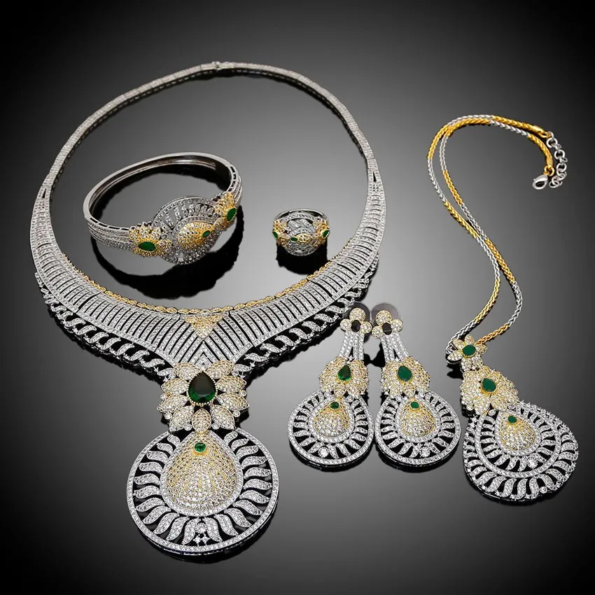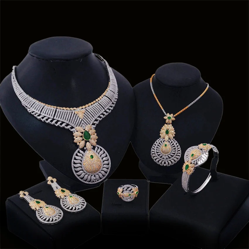 Fashion latest Diamond zircon wedding party bridal gift copper plated gold hot sale factory wholesale jewelry set