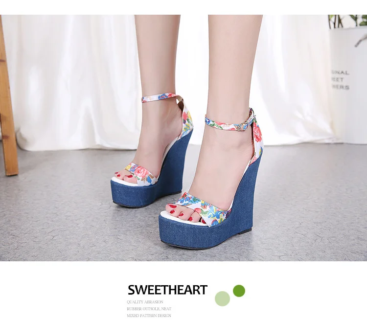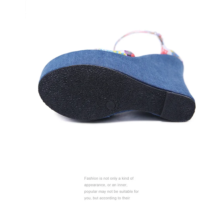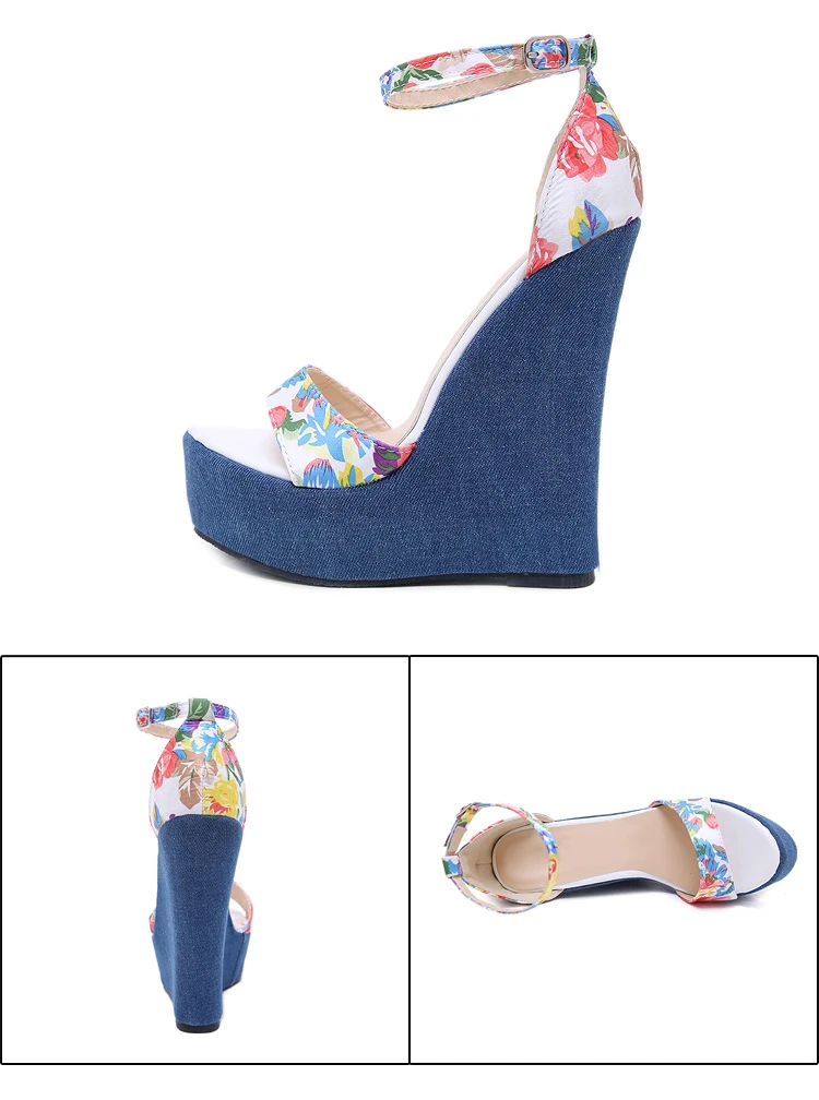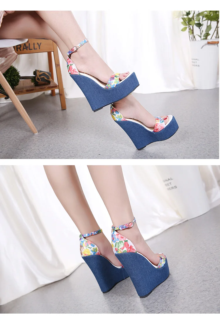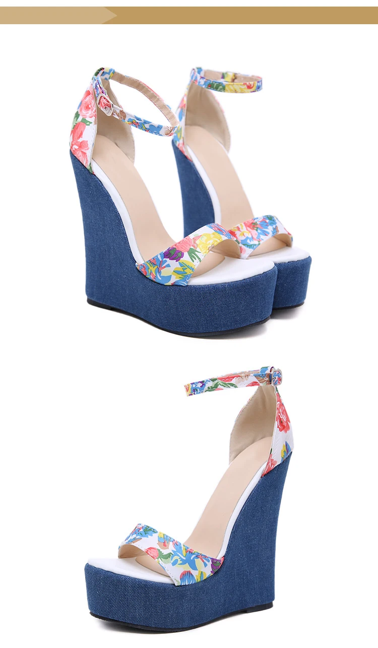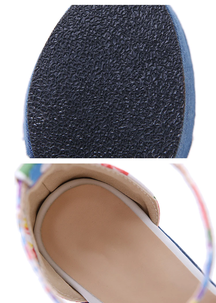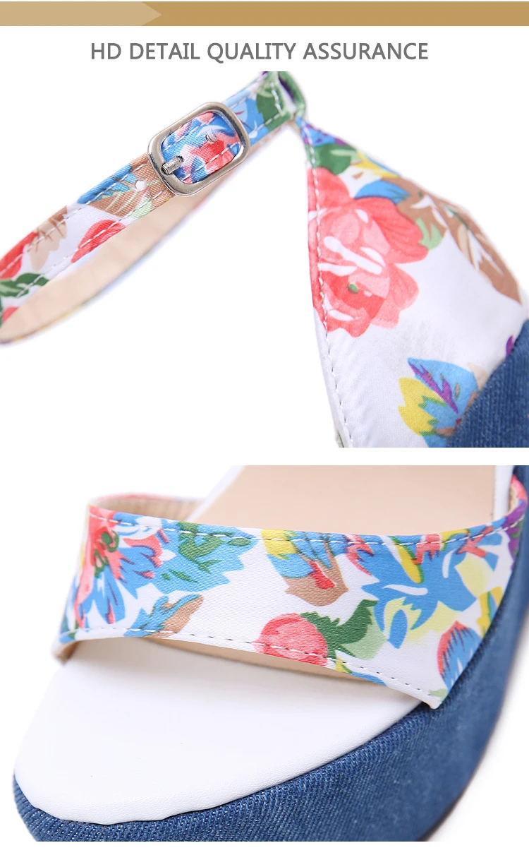 Fashion Leisure Designer Print Denim Sandals Woman Roman Peep Toe Platform Shoes wedges sandals high heeled sandals