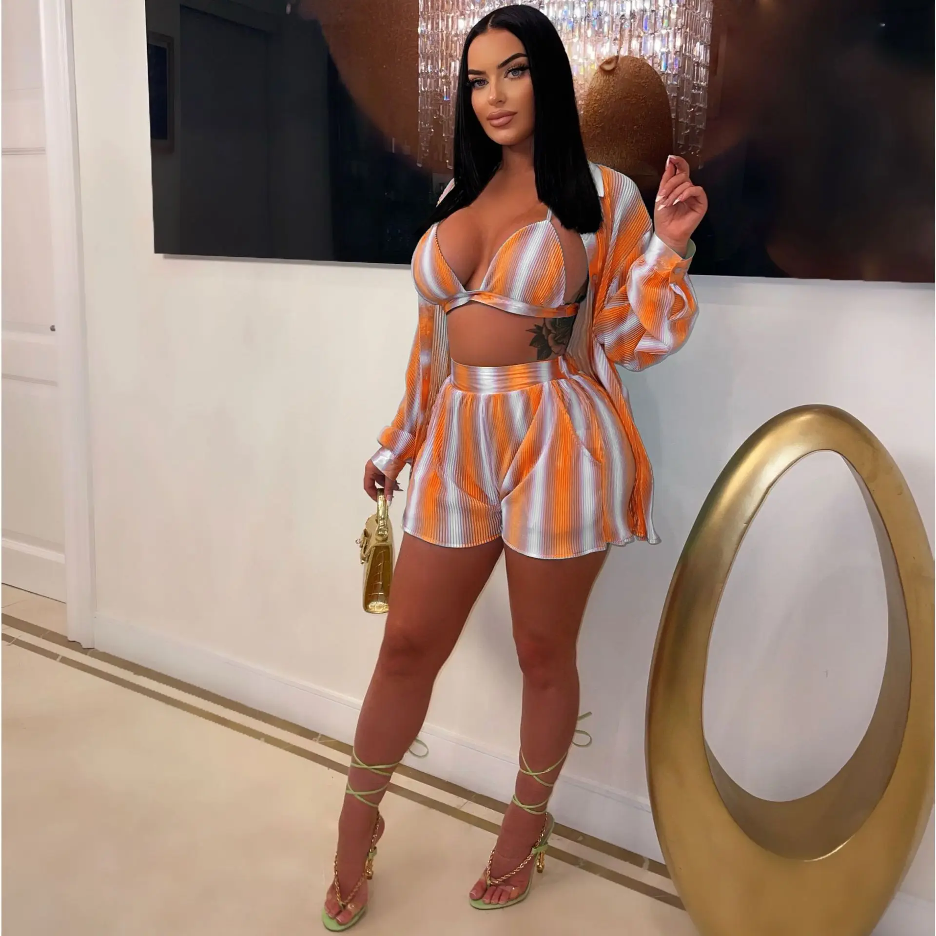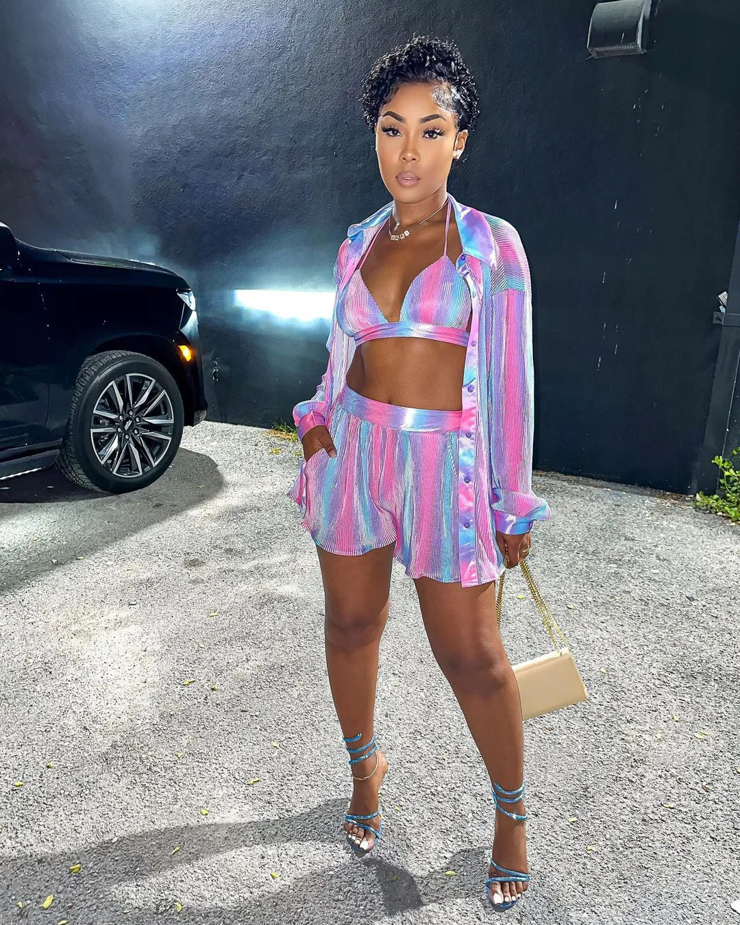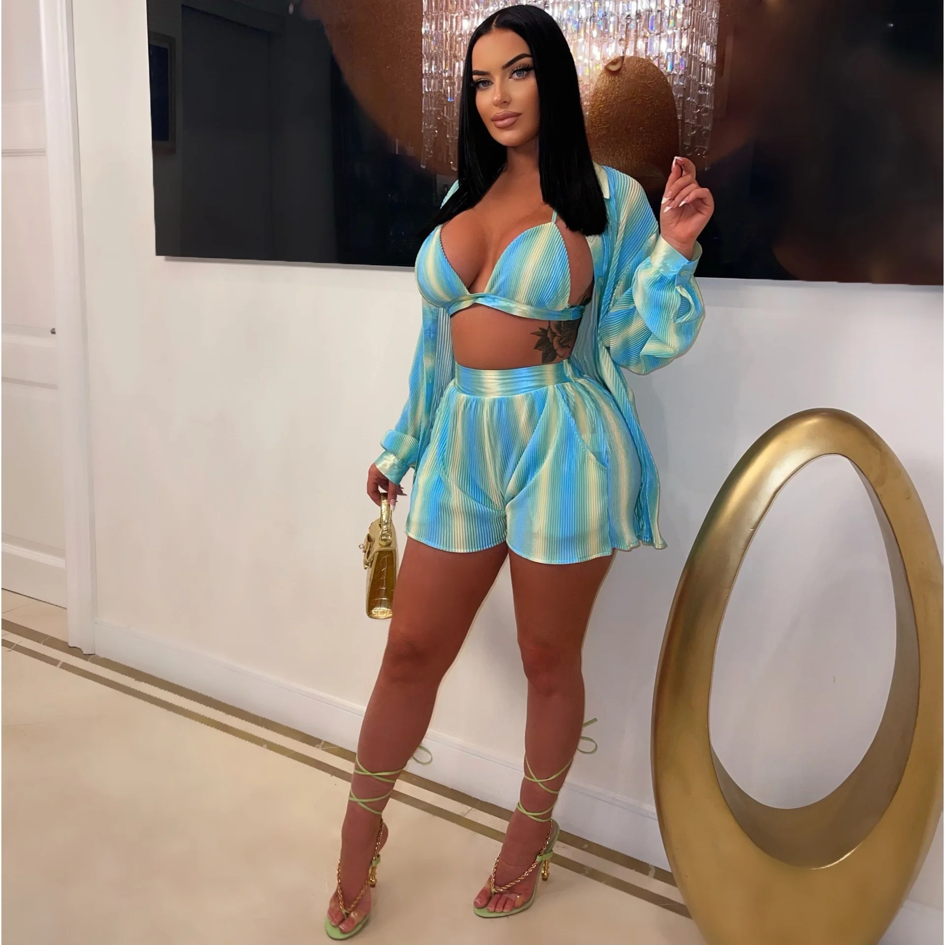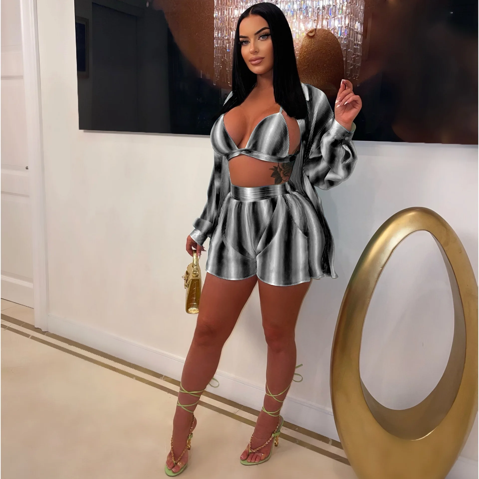 Fashion Leisure Prints Glossy Sexy Shirts Summer Clothes Three Piece Set For Women
