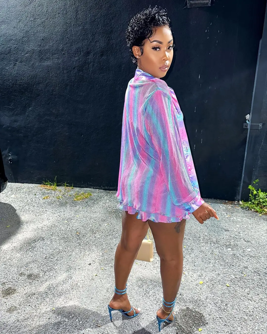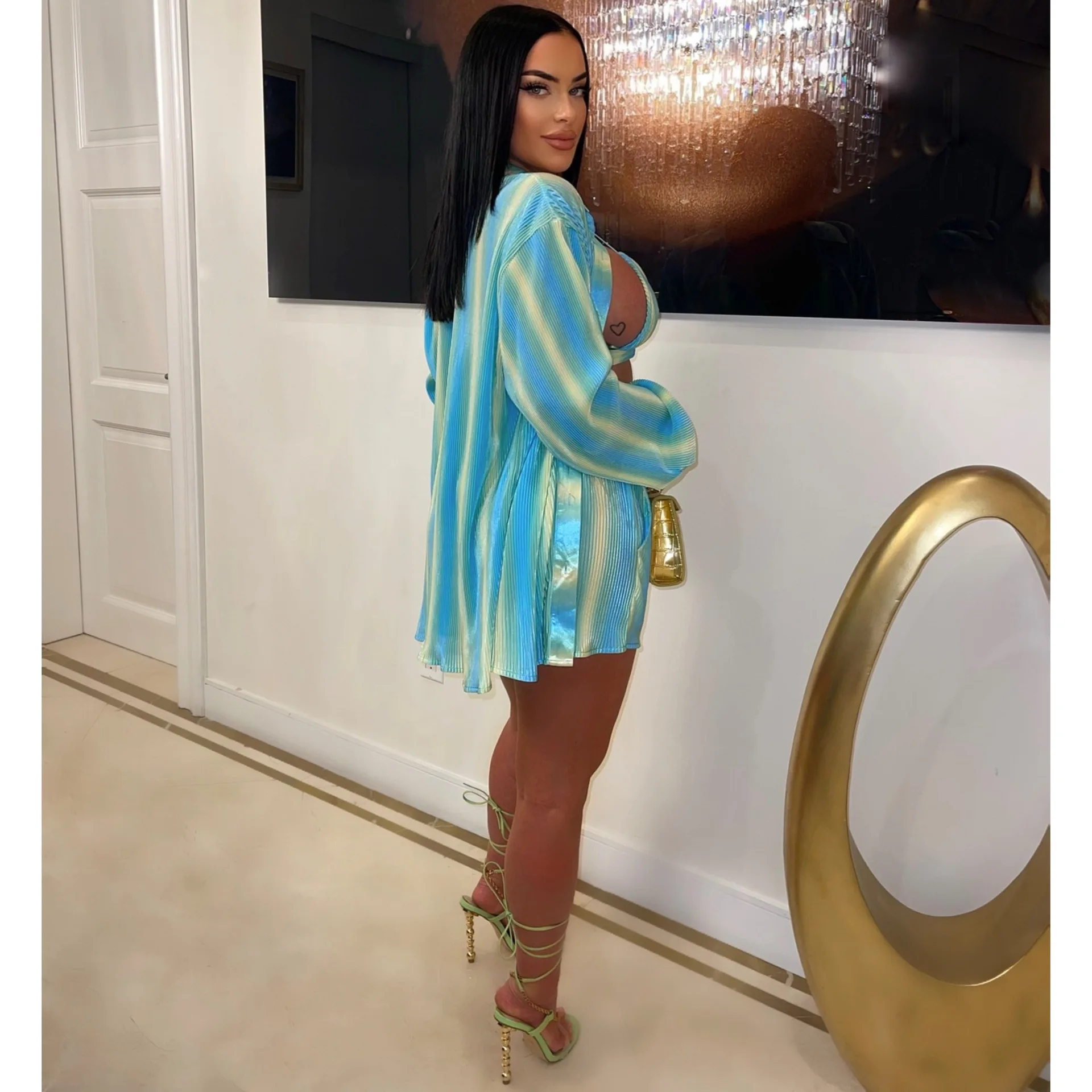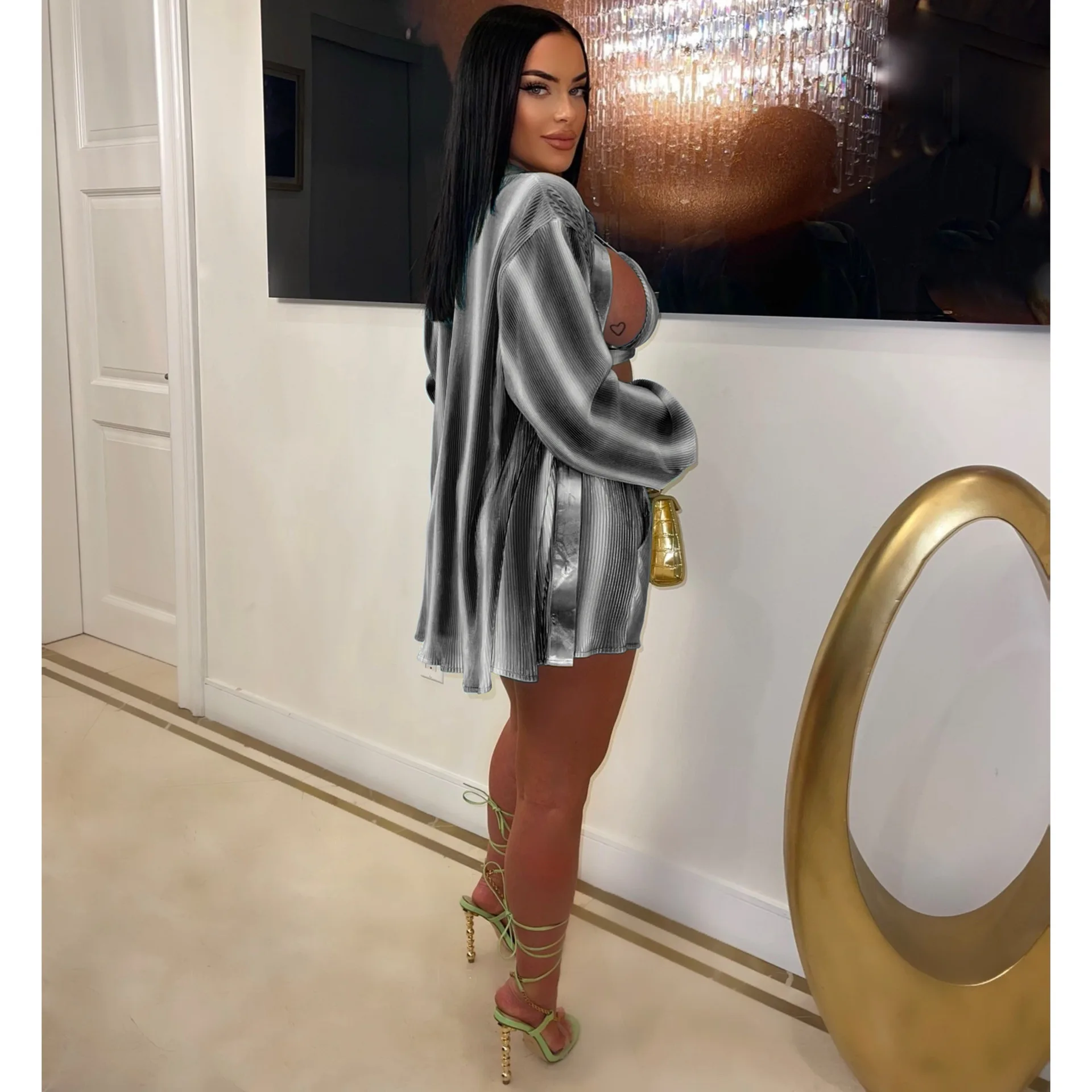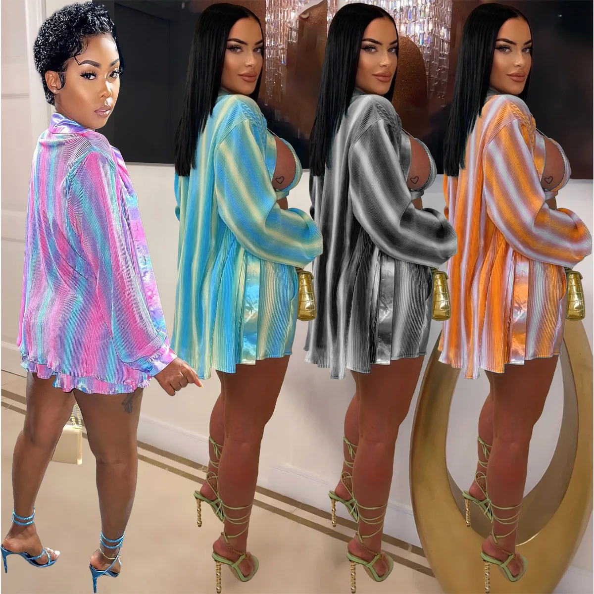 Fashion Leisure Prints Glossy Sexy Shirts Summer Clothes Three Piece Set For Women