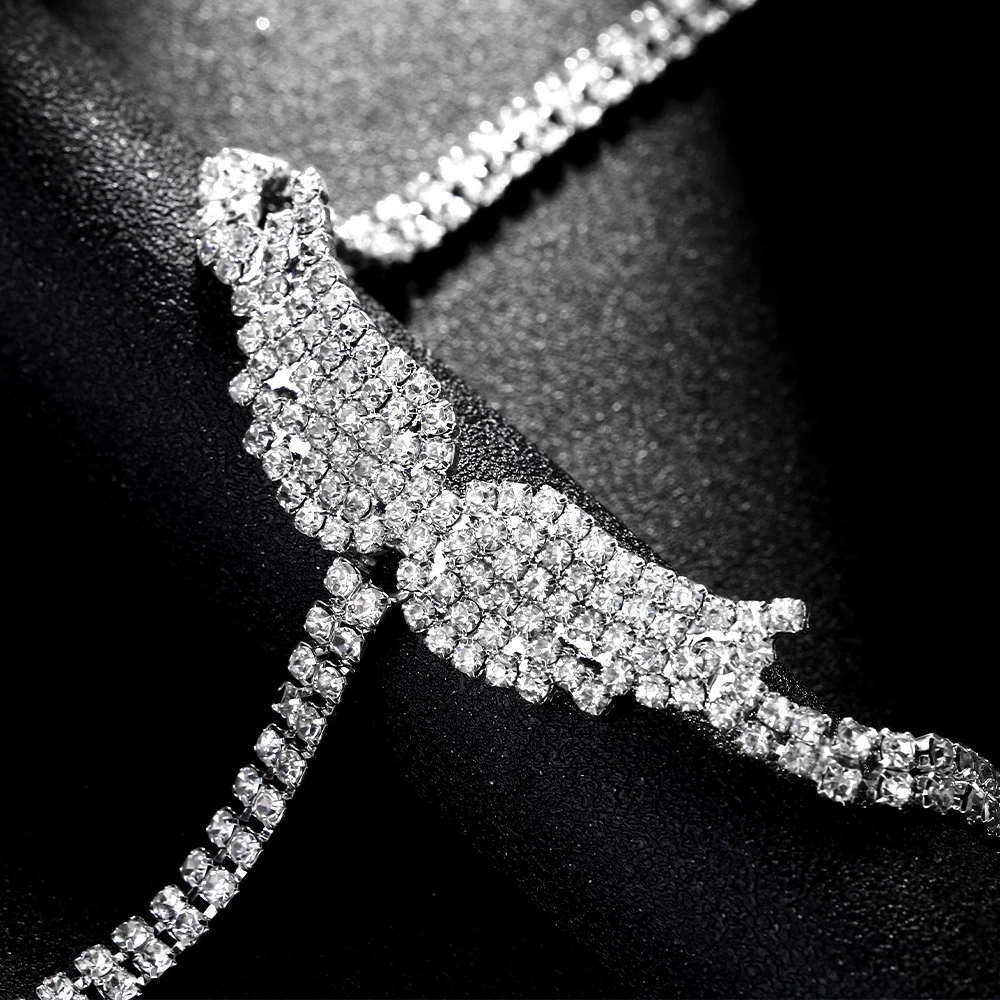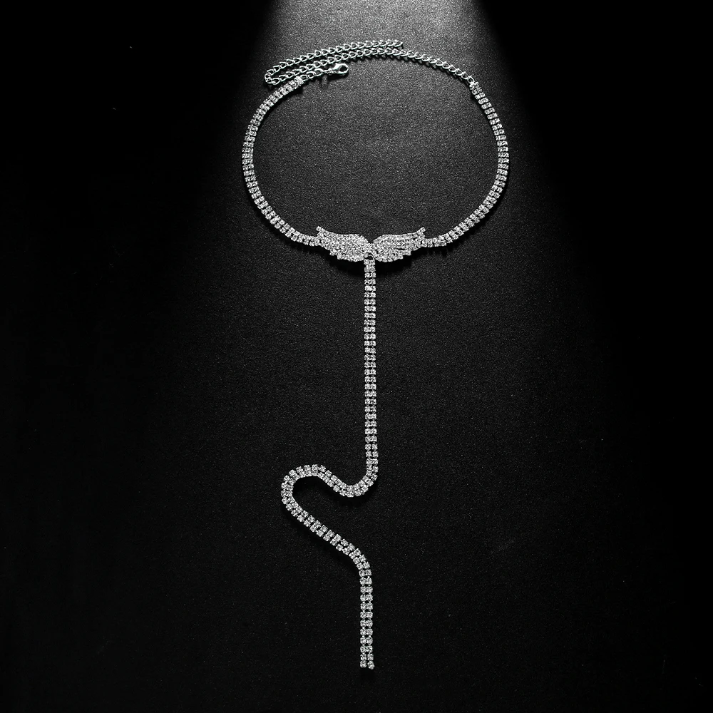 Fashion Long Tassel Angel Wings Full Rhinestone Necklace Jewelry For Women Party Gifts Choker Necklace Wholesale