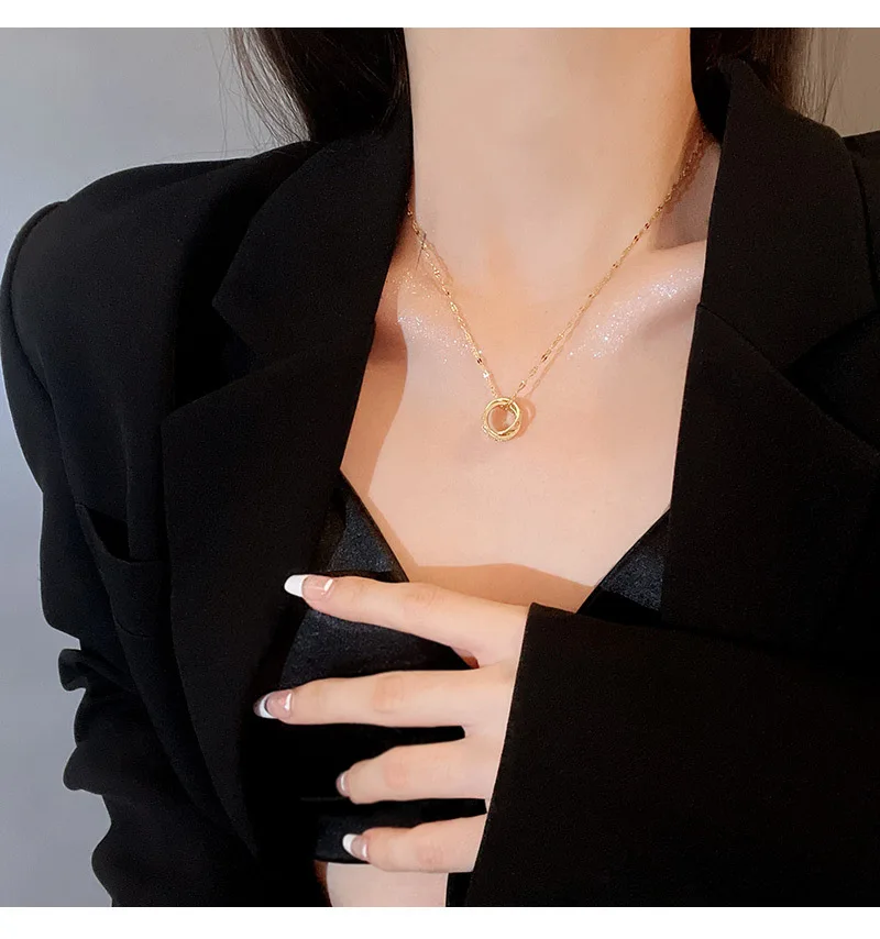 Fashion Modern Choker Necklace Two Layers Round Necklaces Gold Color Necklace Choker Jewelry For Women