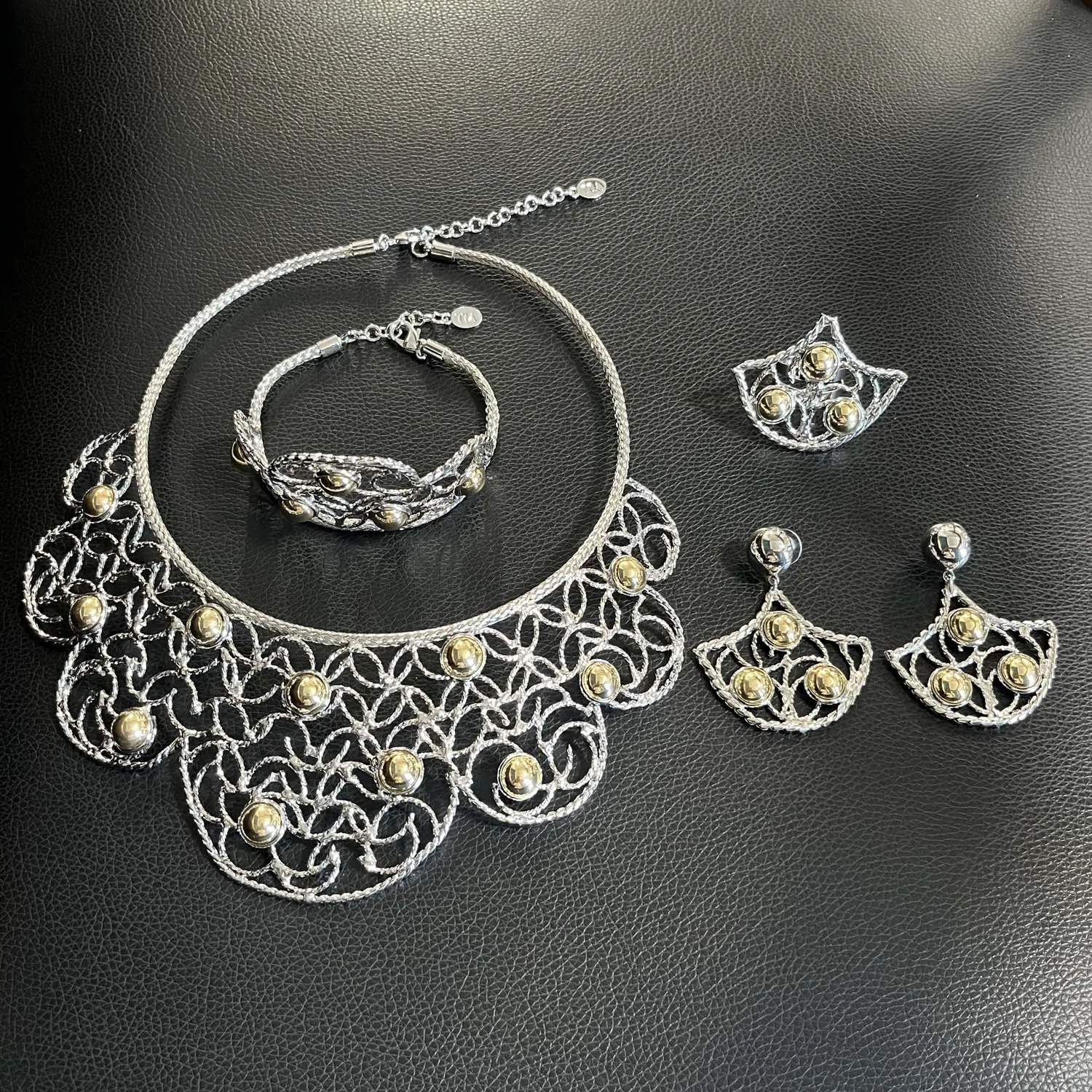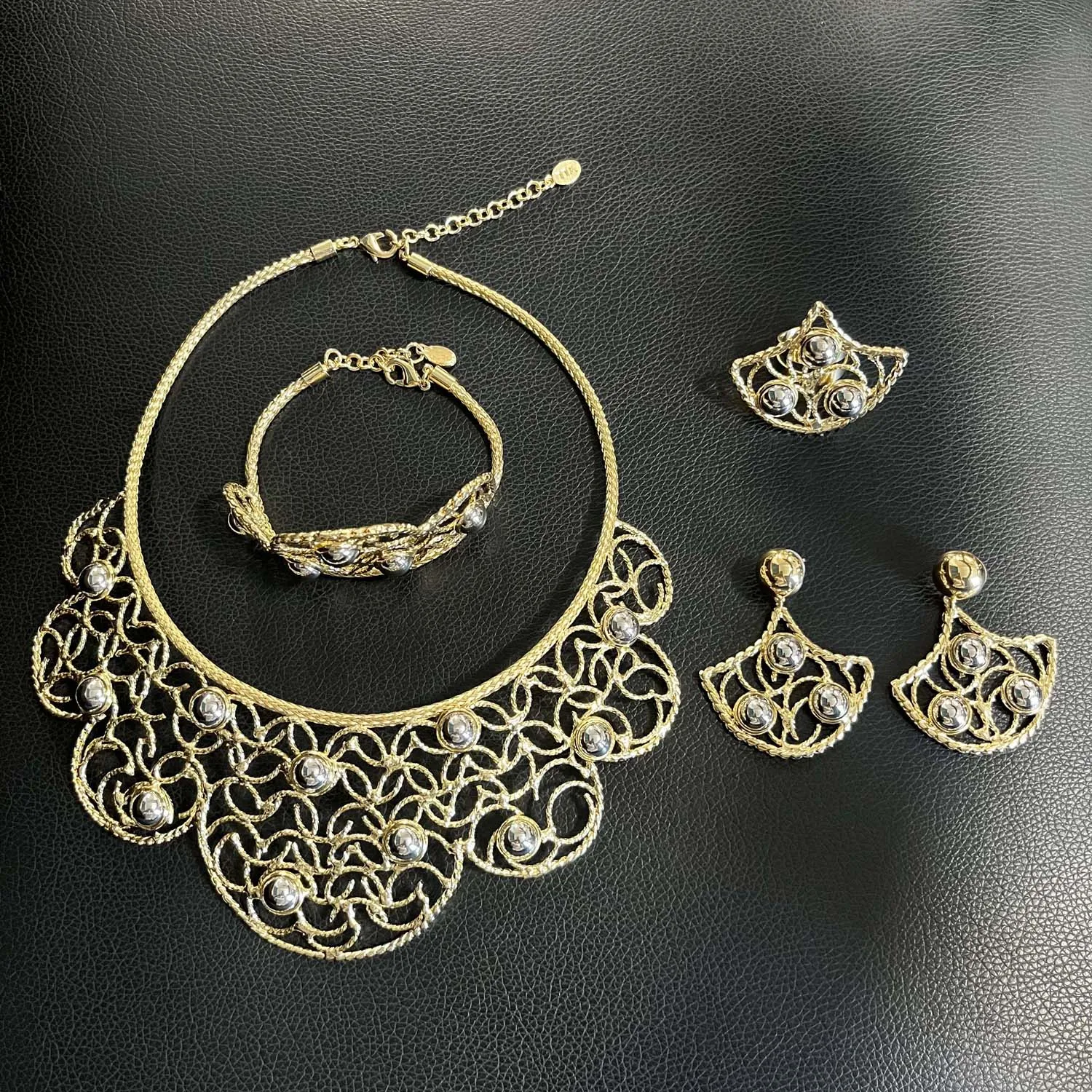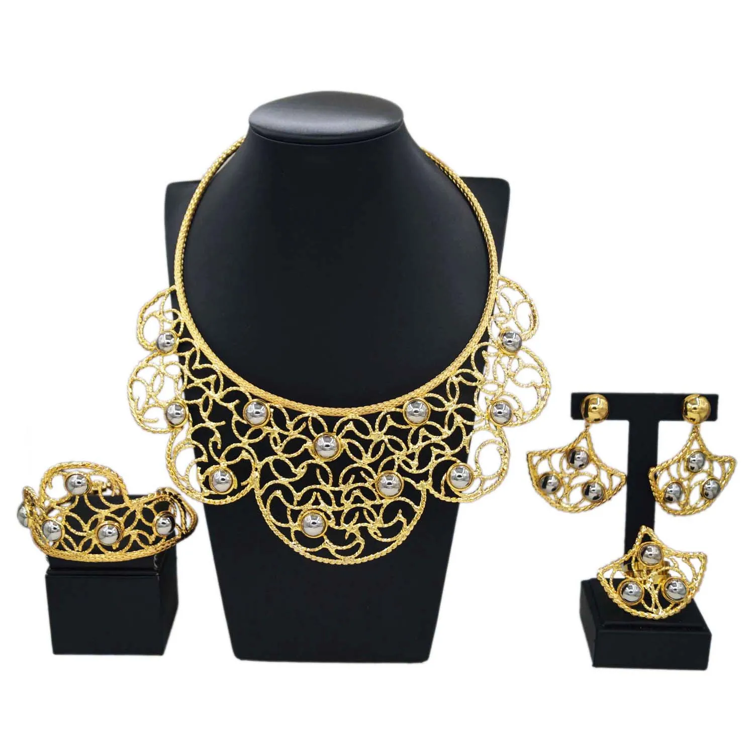 Fashion New Arrivals Brasil Gold Plated Copper Necklace Bracelet Earrings Ring Set Latest Bridal Wedding Wholesale Gift Jewelry