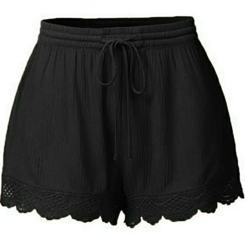 Fashion New Hot Women Casual Simple Shorts Drawstring Elastic Waist Streetwear Hollow Loose Mid Waist Summer Shorts