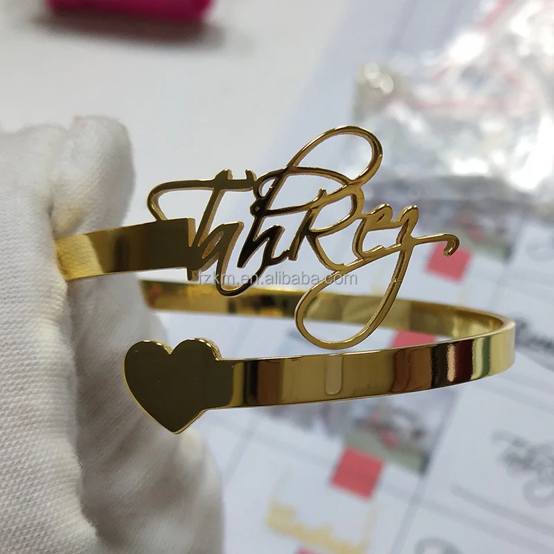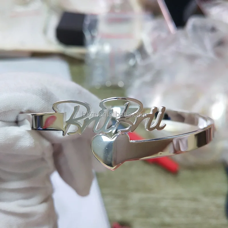 Fashion Personalized Arabic Name Adjustable Bangle with Pearl Stainless Steel Letters Bracelet Custom Name Jewelry Gift