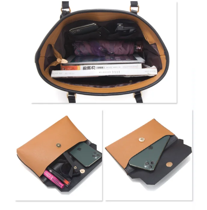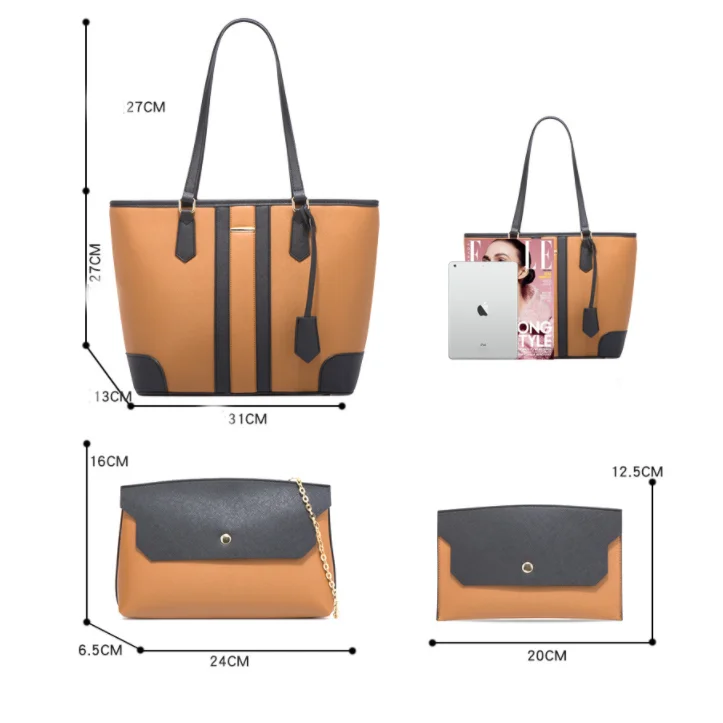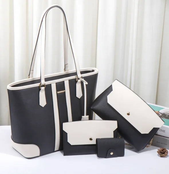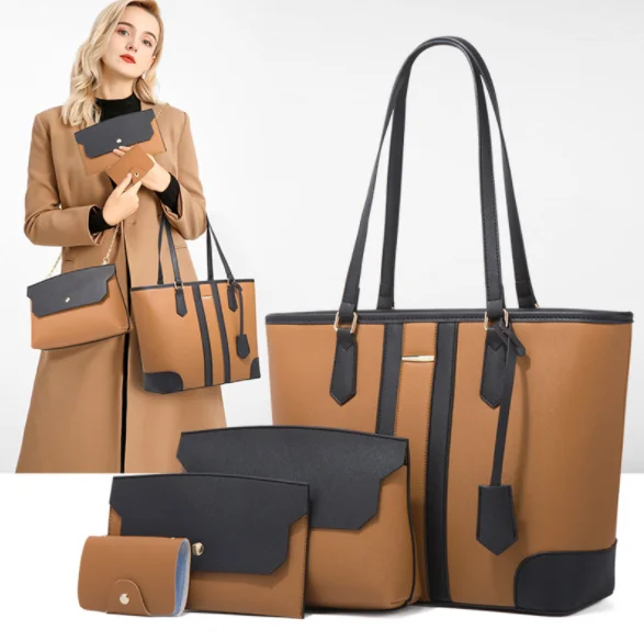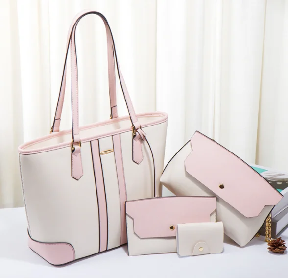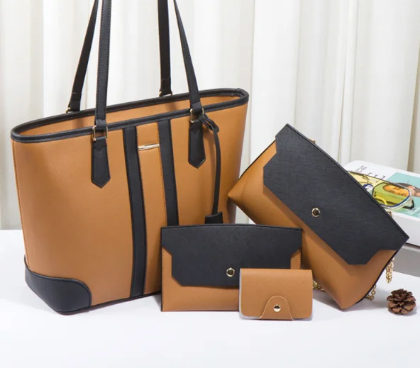 Factory Ready to Ship PU Leather Women's Handbag shopping Tote Bag Clutch Card Holder Coin Pocket 4 Pcs Lady Handbag SetHot sale