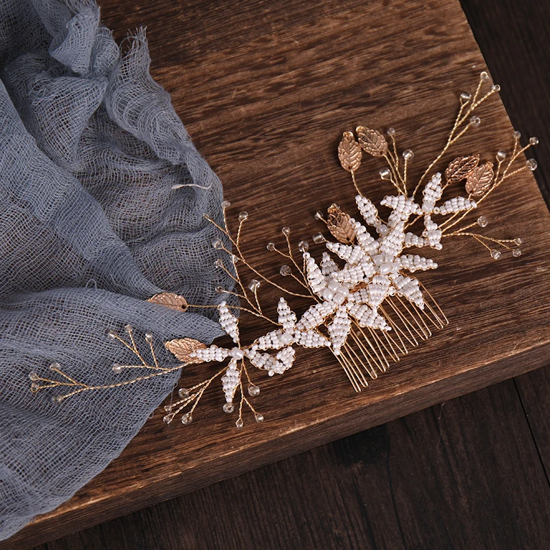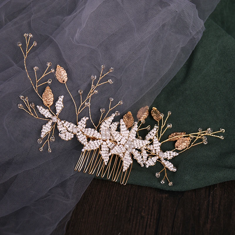 Gold leaf pearl bridal headband women hair accessories girls wedding hair vine jewelry wedding headpiece