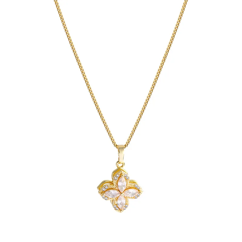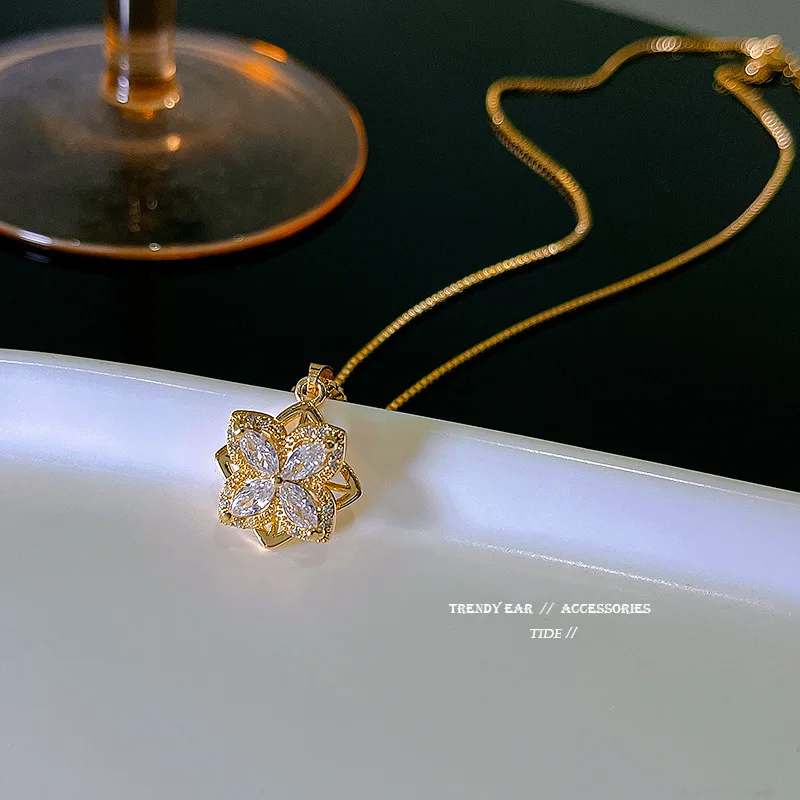 Fashion Rotatable Four Leaf Clover Necklace Pendant Lucky Grass Clavicle Chain Women Girl Birthday Mother Day Gift