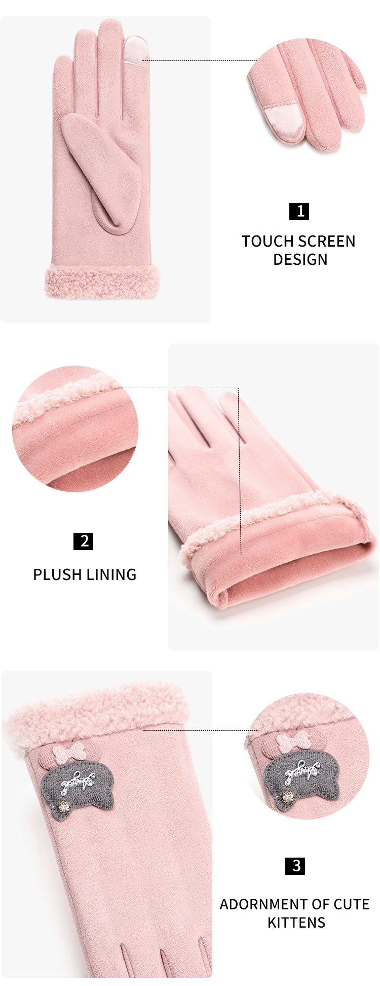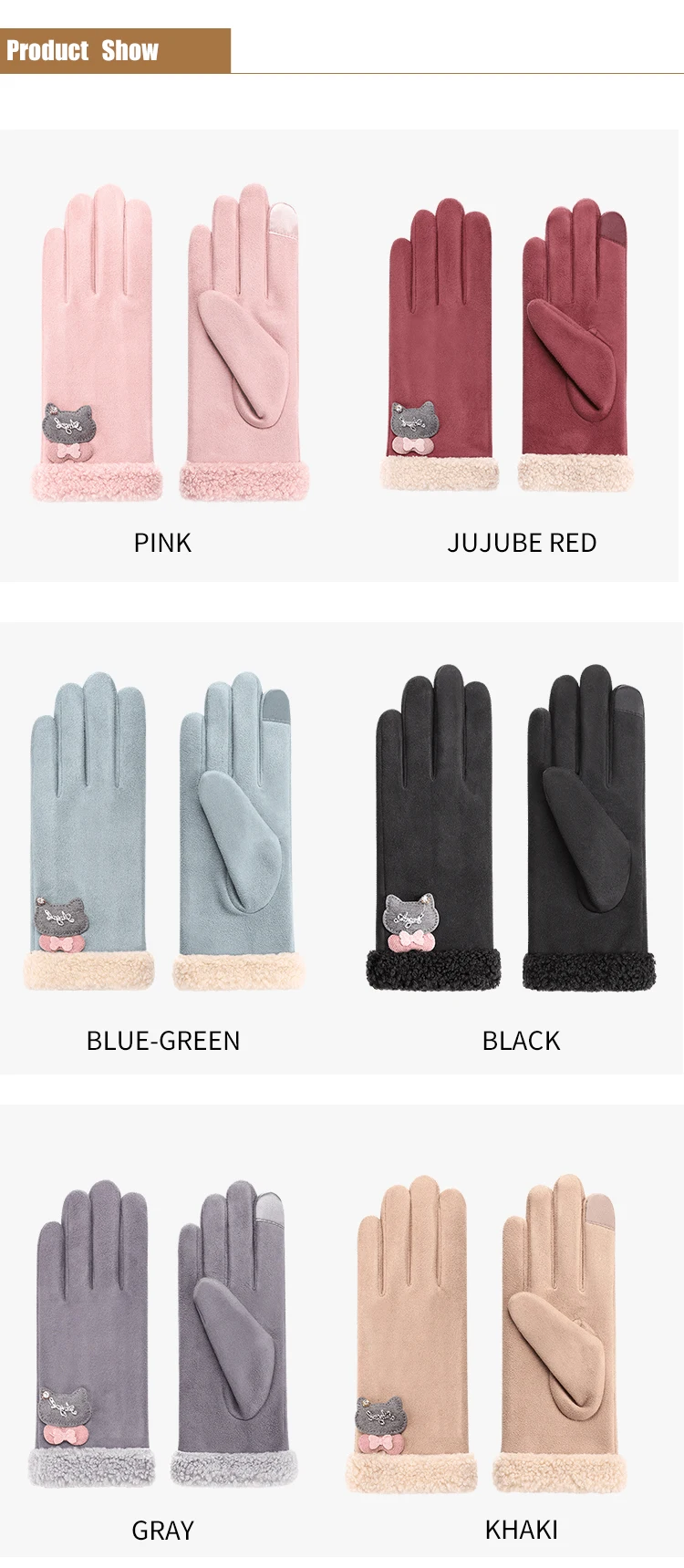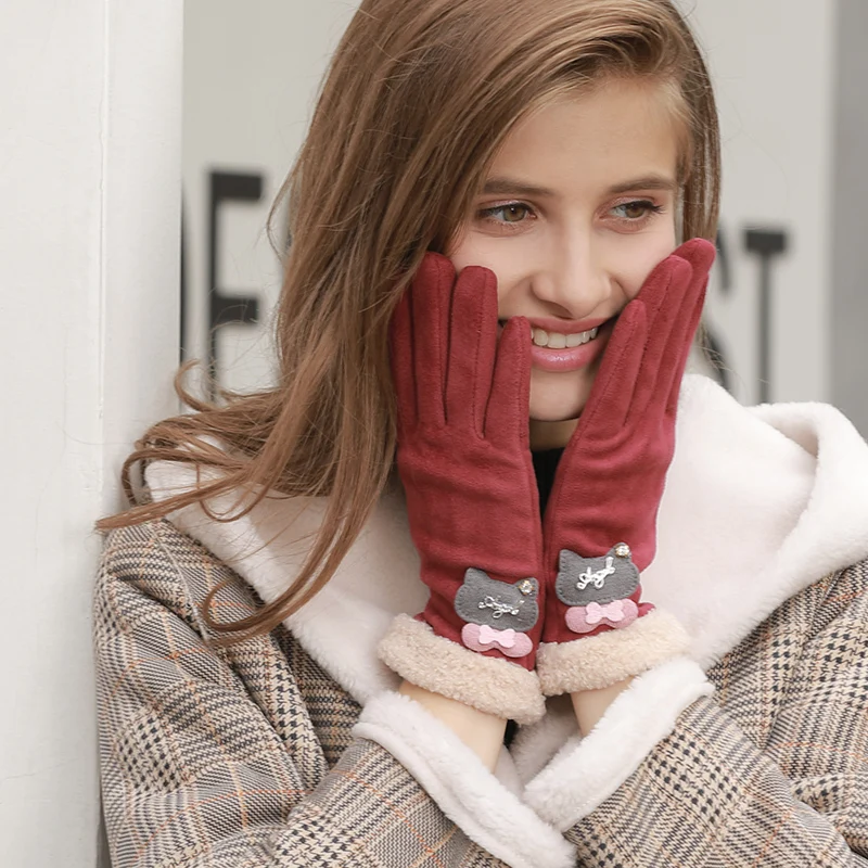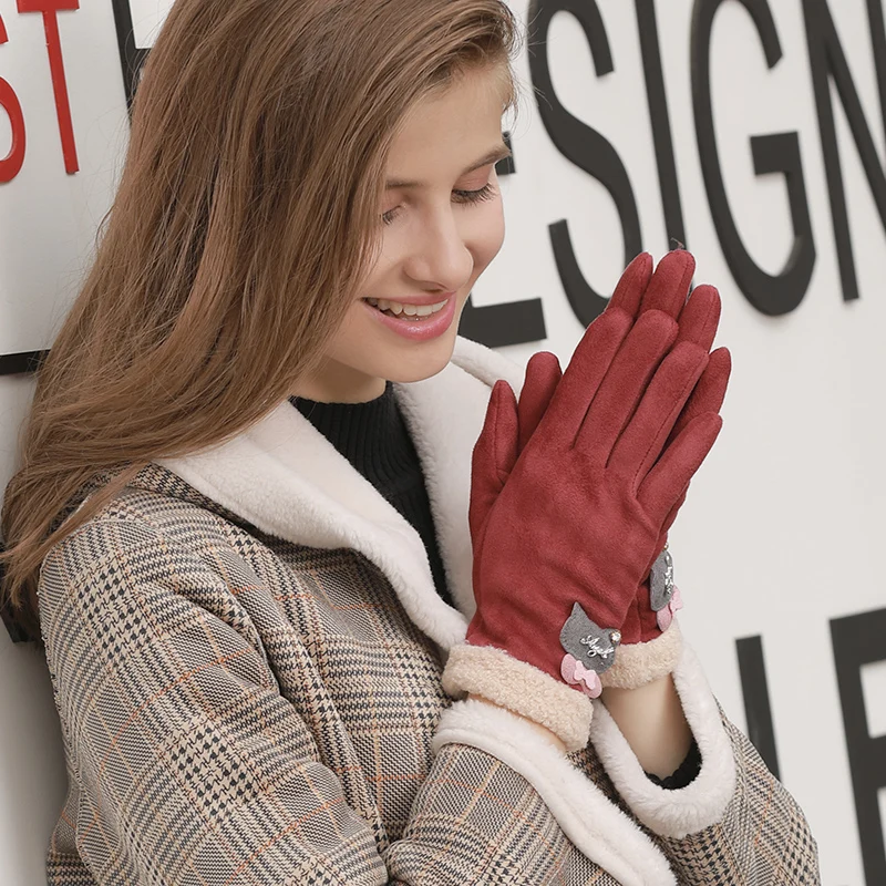 Fashion sensitive touch screen faux fur cuff suede fabric red bike riding winter women gloves