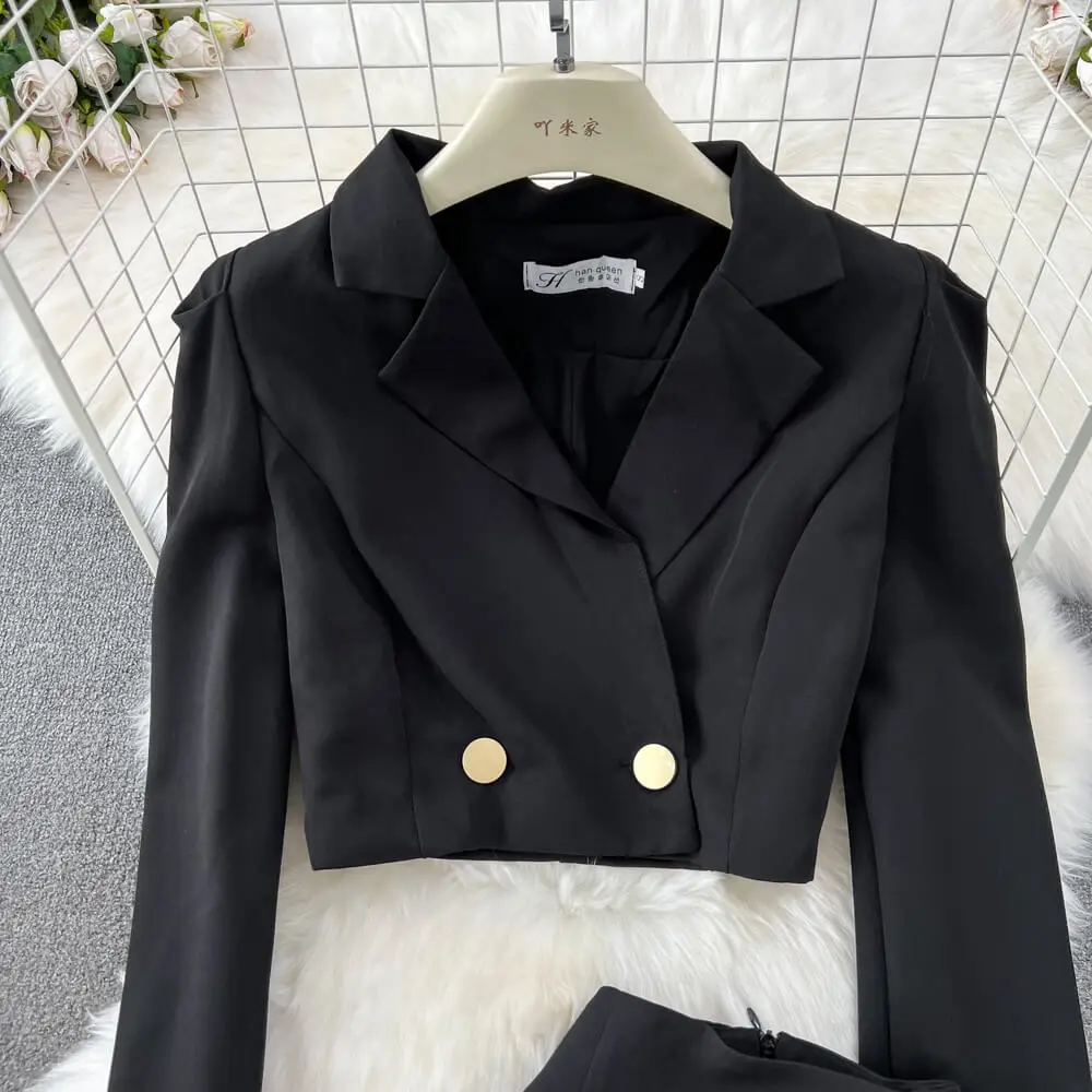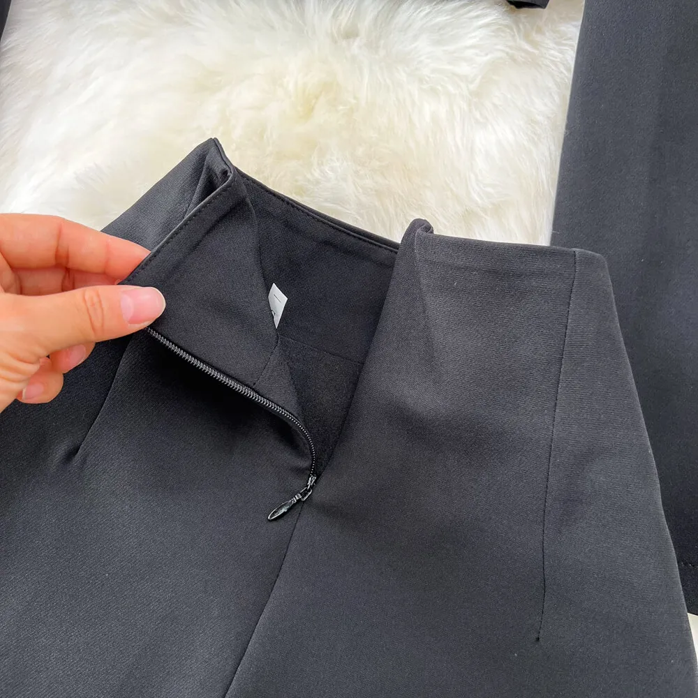 Fashion Set Long-Sleeved slim Short suit Jacket Two-Piece High-Waisted Slimming Slit Skirt Autumn