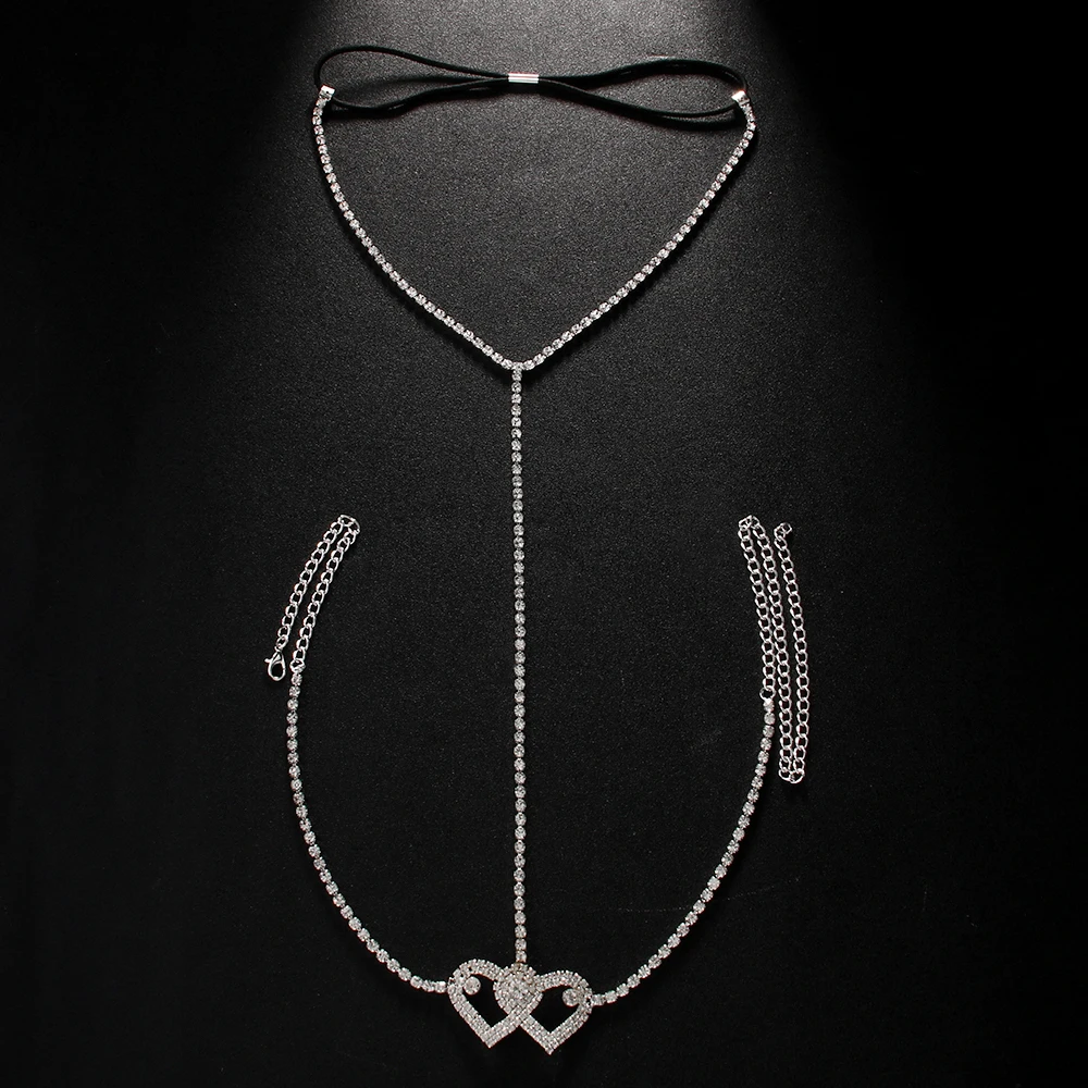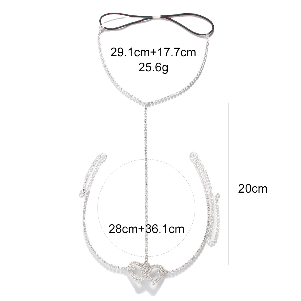 Fashion Simple Design Double Heart Rhinestone Thigh Leg Chain Jewelry For Women Girls Adjustable Party Sexy Crystal Body Chain
