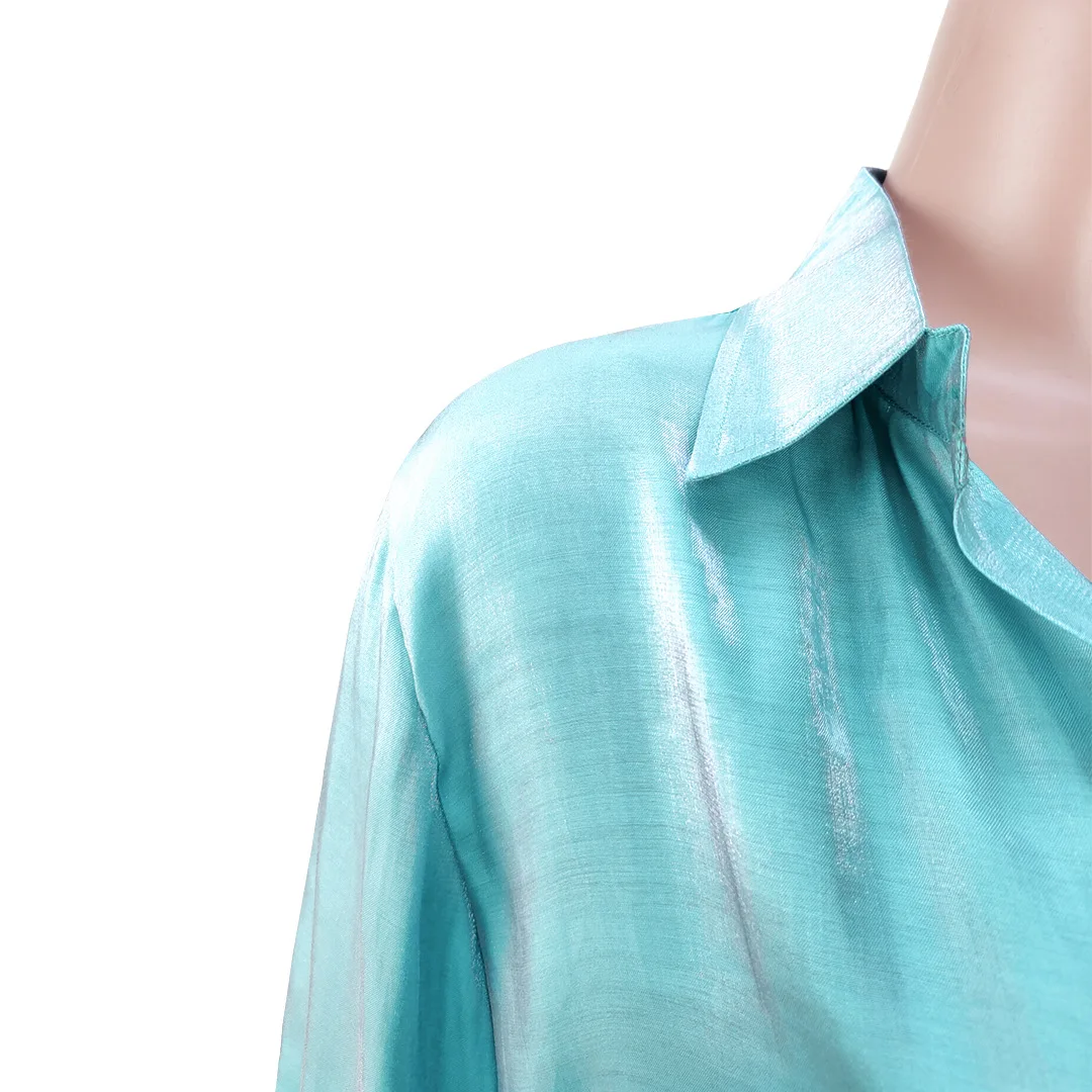 Fashion solid color elegant loose women's dress shirt blouse shiny casual long sleeve sexy mini ladies dress