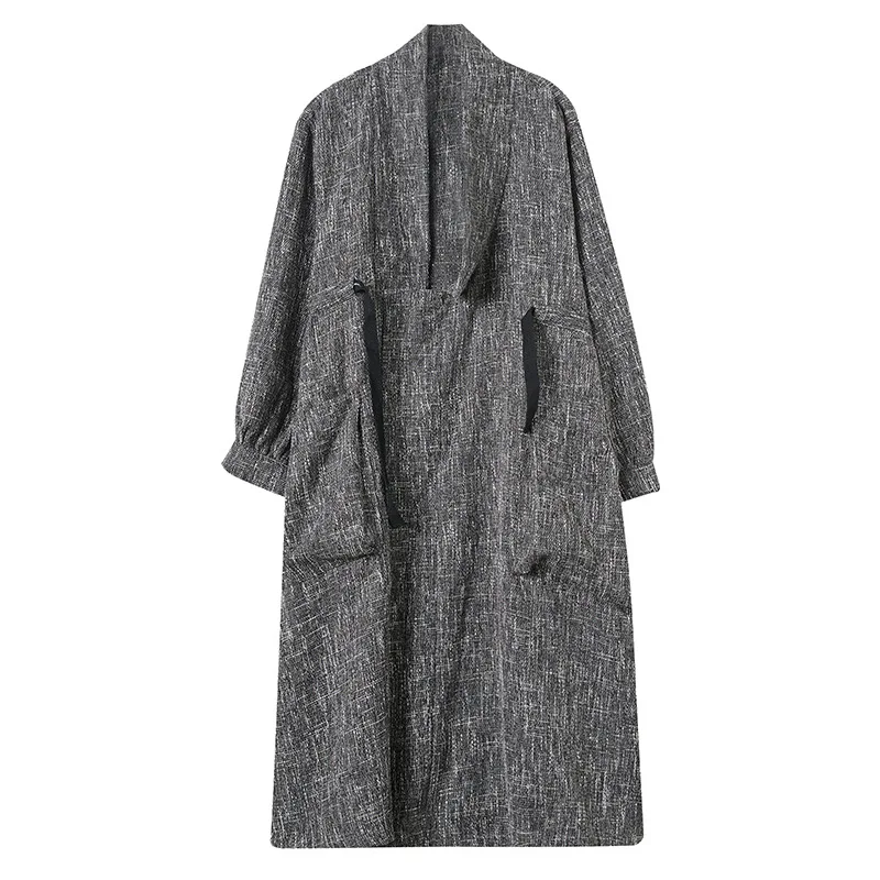 Fashion streetwear vintage ladies elegant windbreaker jacket drawstring loose long women's trench coats