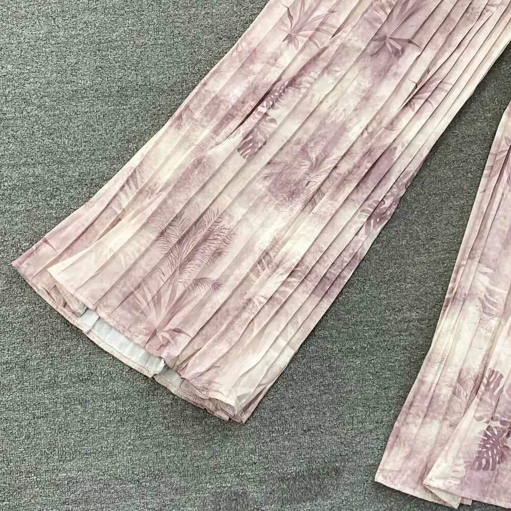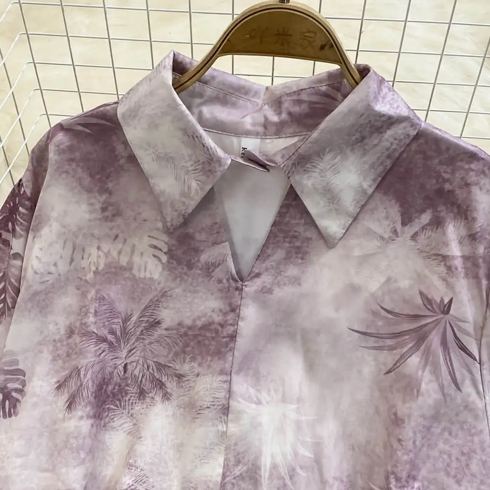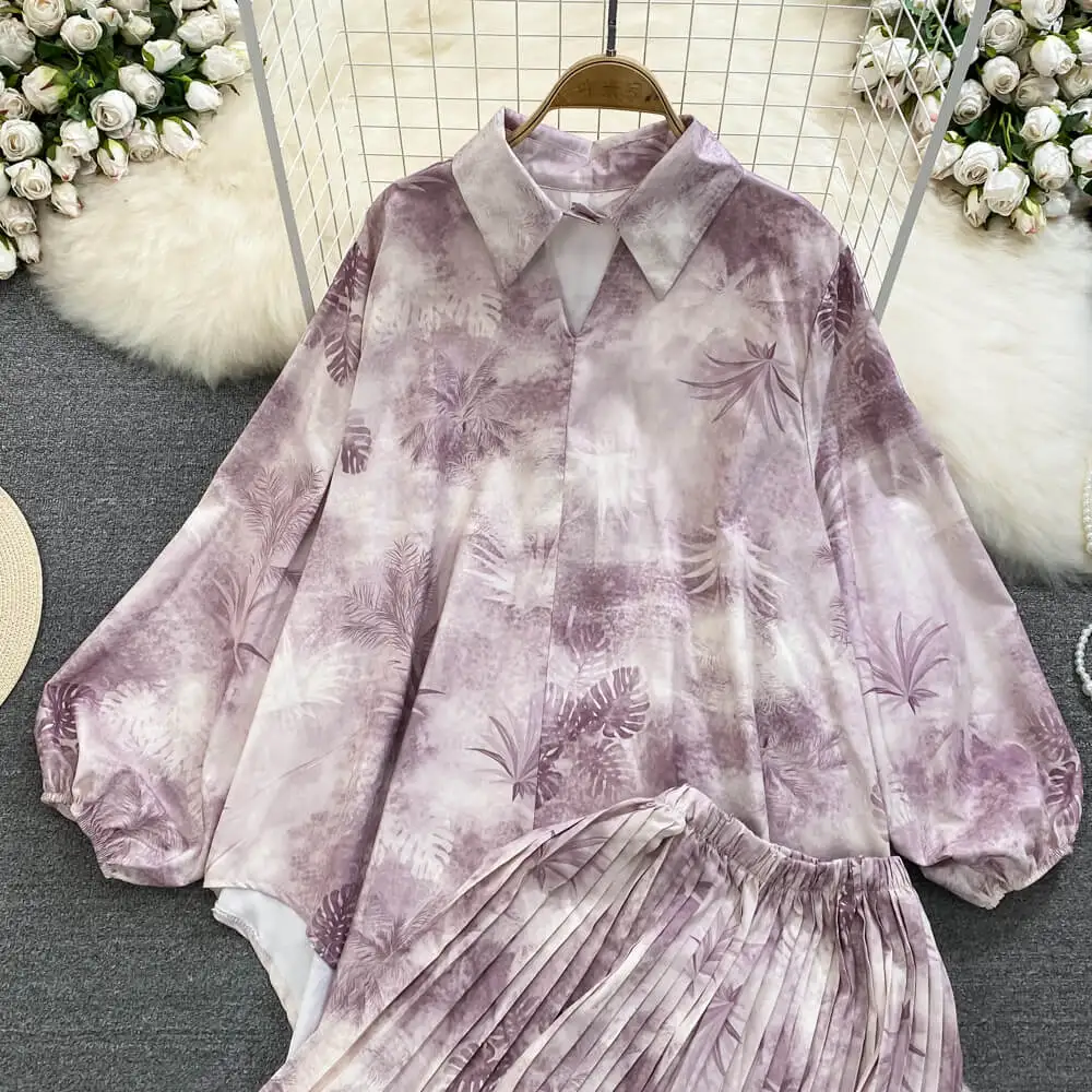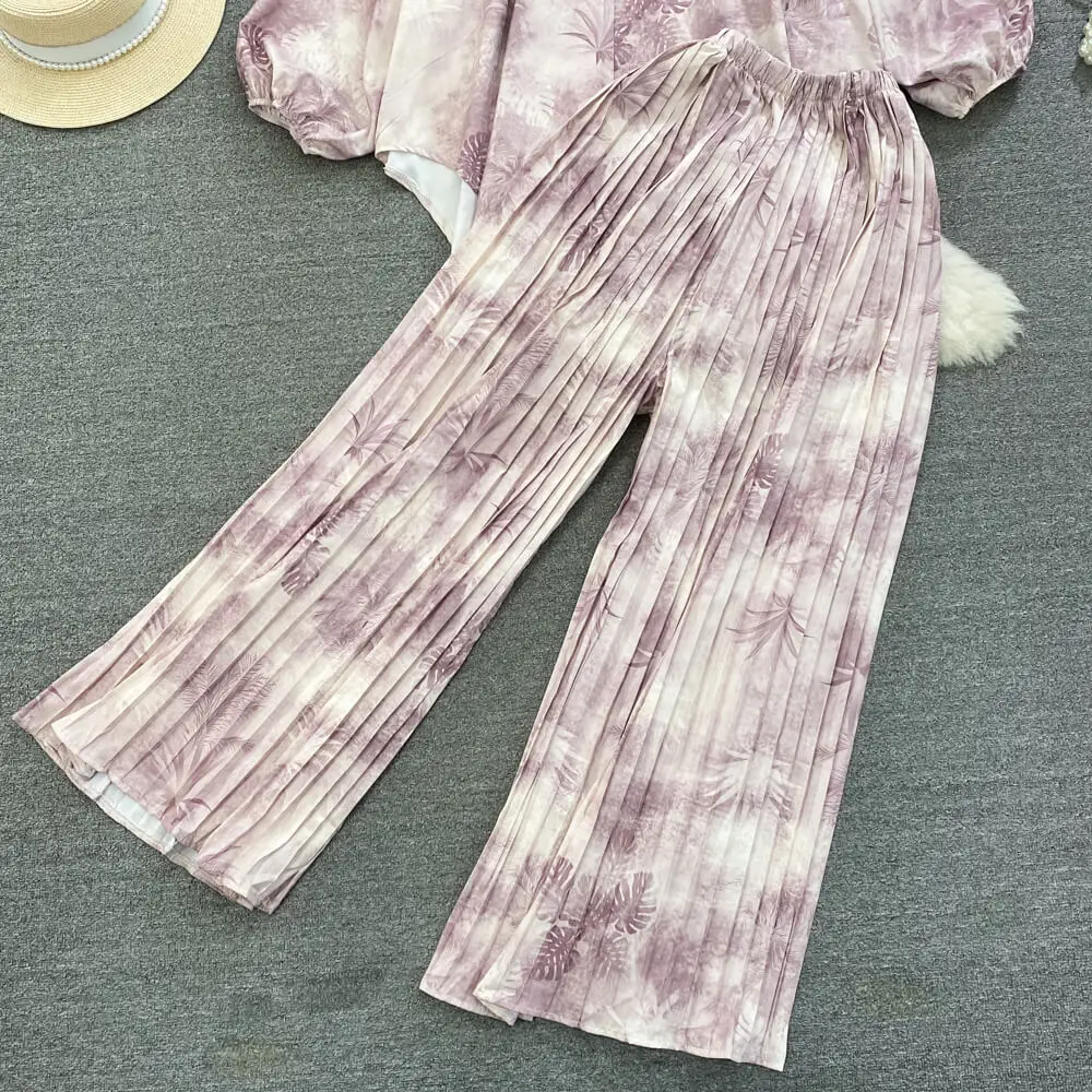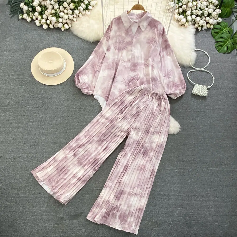 Fashion Suit Retro Loose Irregular Single-Breasted Printed Shirt High-Waisted Wide-Leg Pants Two Piece Set