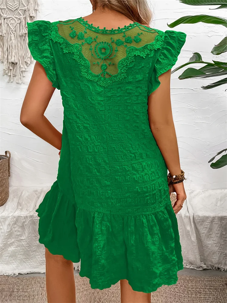 Fashion Summer Dresses Lace Loose 2024 Spring Summer Elegant Casual Round Neck Ruffle Trimmed Decorated Dress Vestido Female