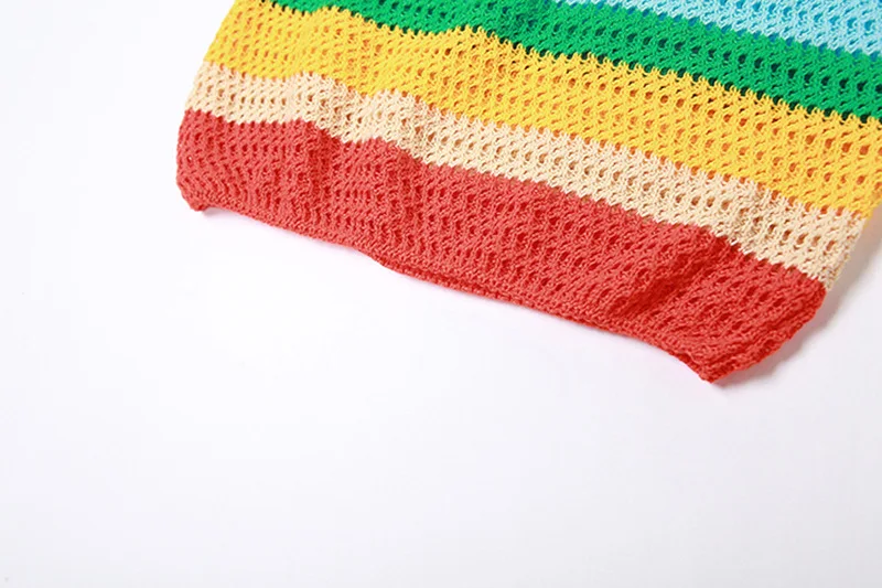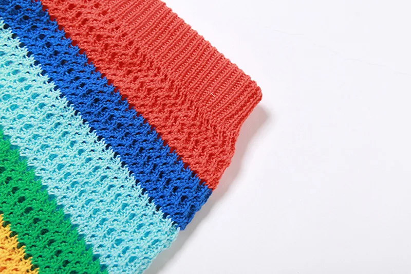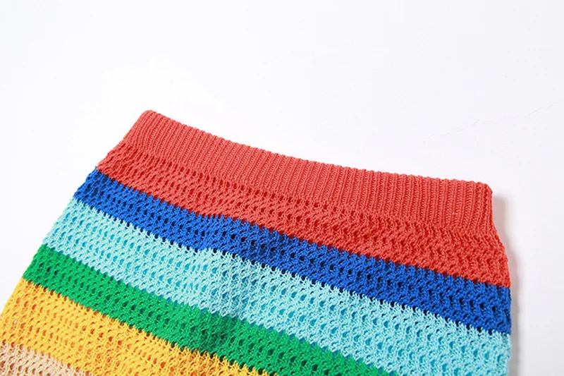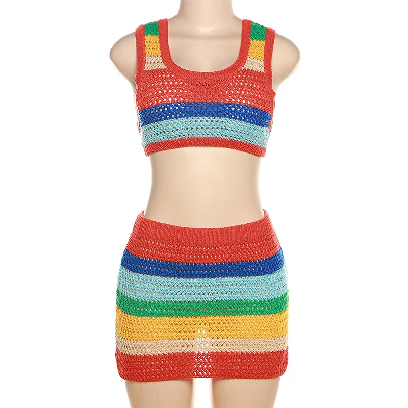 Fashion Summer Outfit Women Colorful Stripe Knit Mini Skirt And Top Set For Women Sexy 2 Two Piece Skirt Set