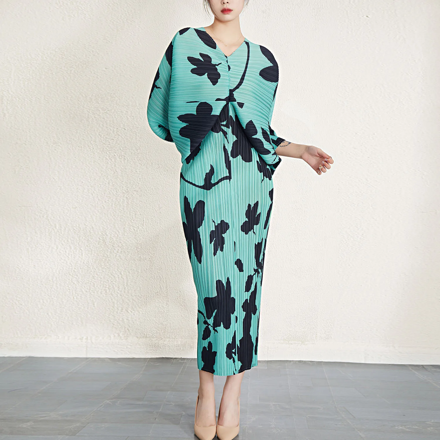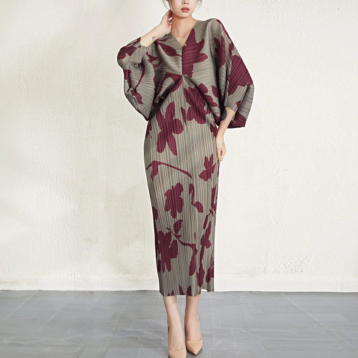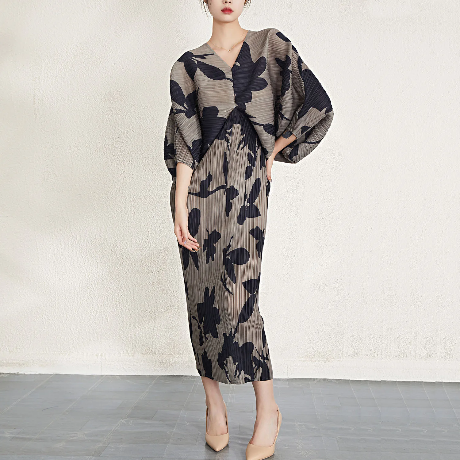 Fashion V -neck High Quality 2023 Spring and Summer New Women's Waistress Wrinkle Slim Casual Dress Wholesale