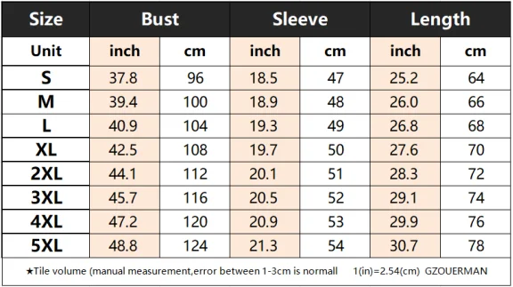 1.Please allow 1-3cm deviation due to manual measurement. 2.Measure the clothes you usually wear but not measure your body to choose size. 3.Choose the right size according to your own measurements combined with our size chart. Attention:Due to the effect of different monitors and cameras, the goods may look a little bit different from pictures shown online. GZOUERMAN |
