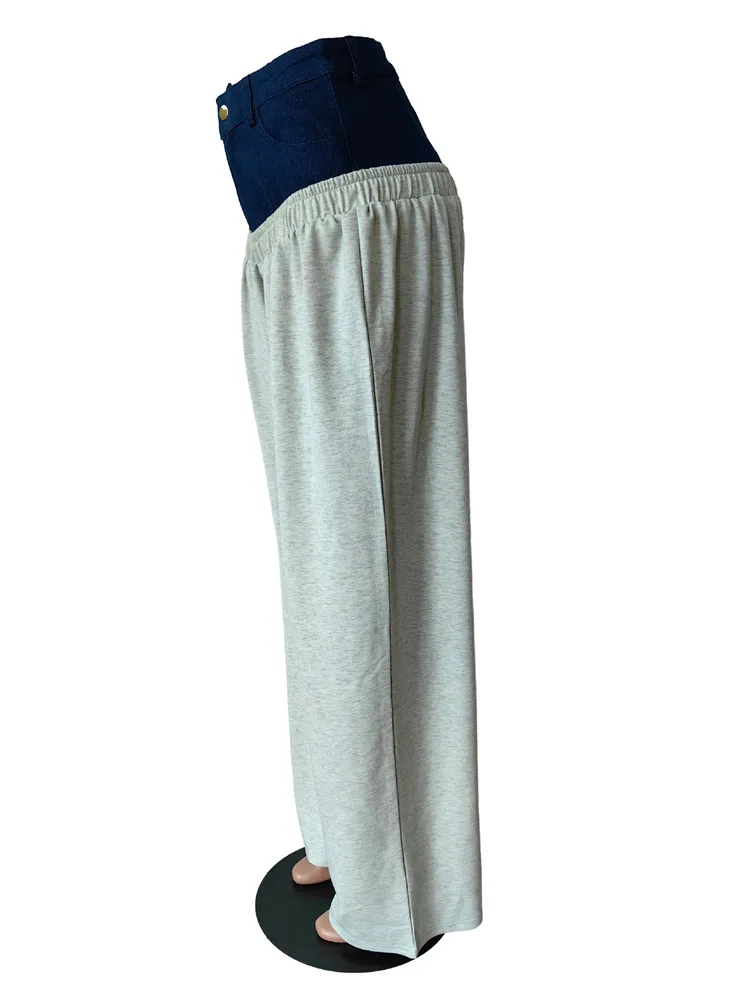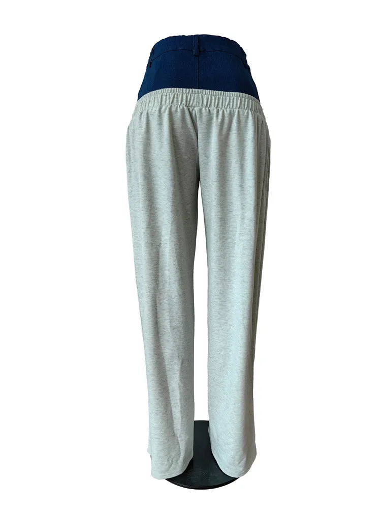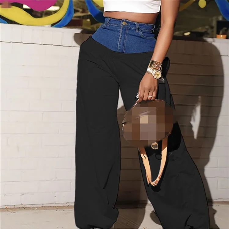 Fashion Women Denim Patchwork High Waist Jogger Pants 2023 Active Zipper Fly Jean Splicing Trousers