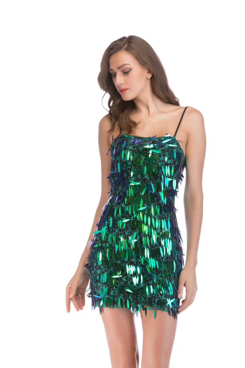 Fashion women fresh and natural casual dress strap shining sequin bodycon dress v-neck club party dress