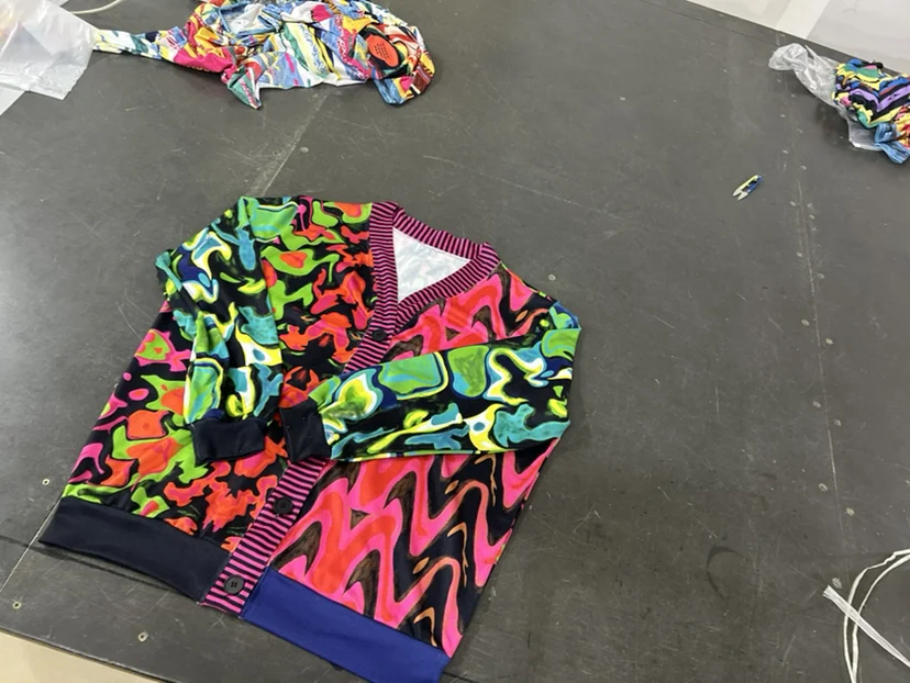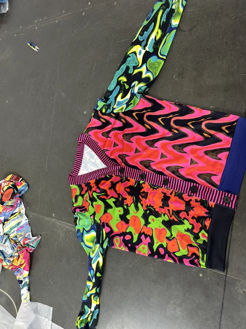 Fashion Women Long Sleeve V-neck Color Collision Lady Streetwear Print Loose Long Cardigan