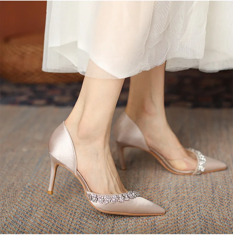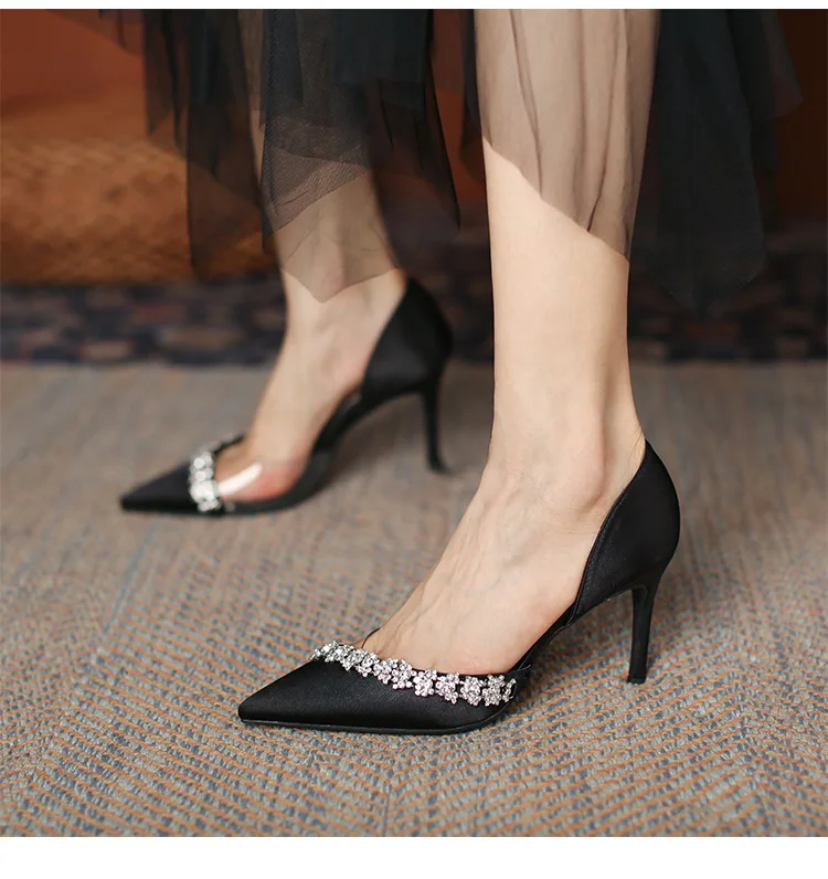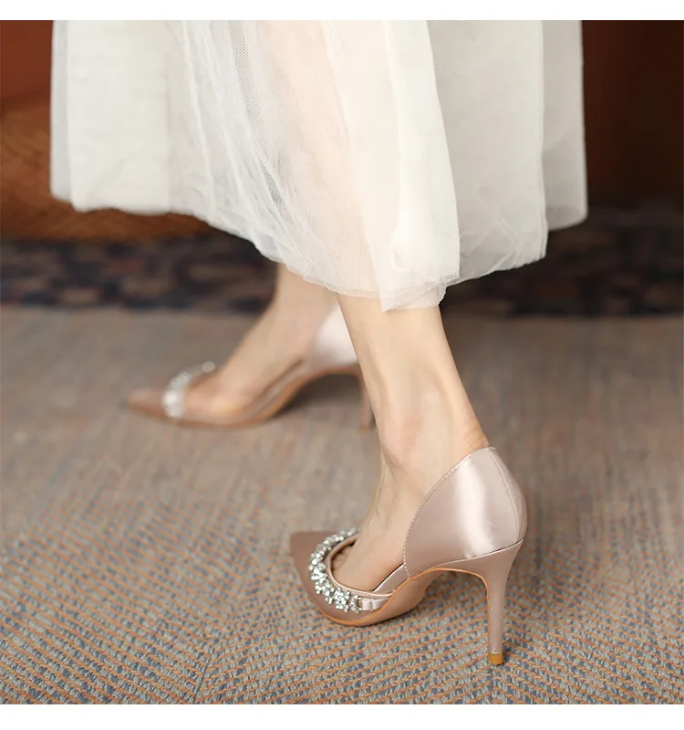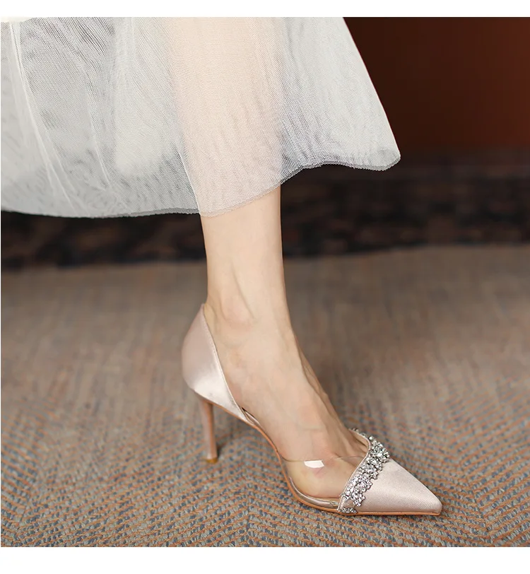 Fashion Women Pointed-toe Rhinestone Sandal Pumps Female Wedding Banquet Dress High Heel Stiletto