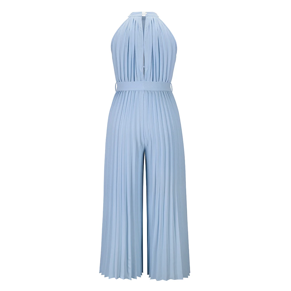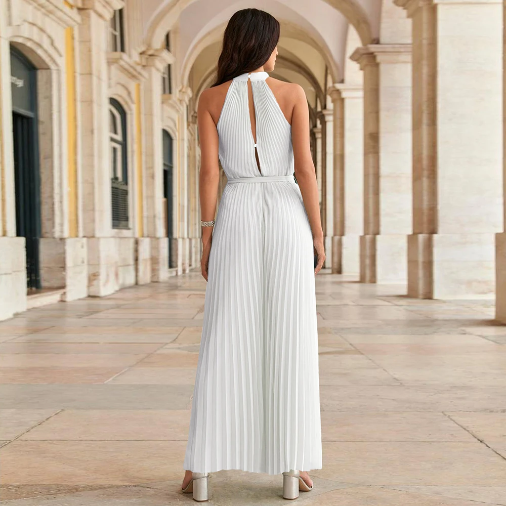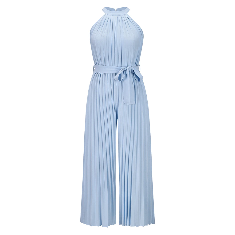 Fashion Women Sleeveless Halter Neck Pleated Jumpsuits Long Pants Trousers