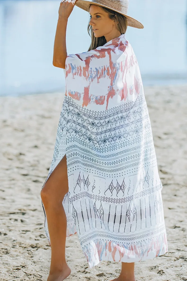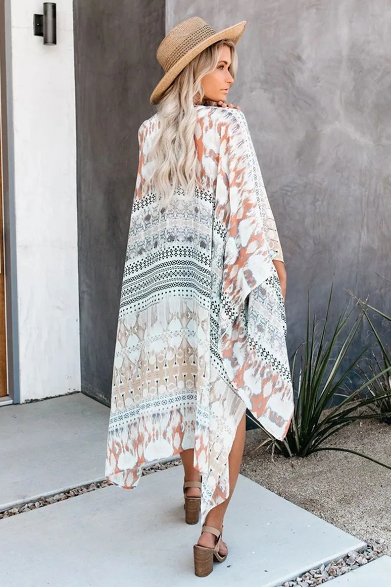 Fashion Women's Beach Cover Ups Bohemian Kimono Floral Print Summer Beach Casual Loose Cardigan Swimwear Cover Up