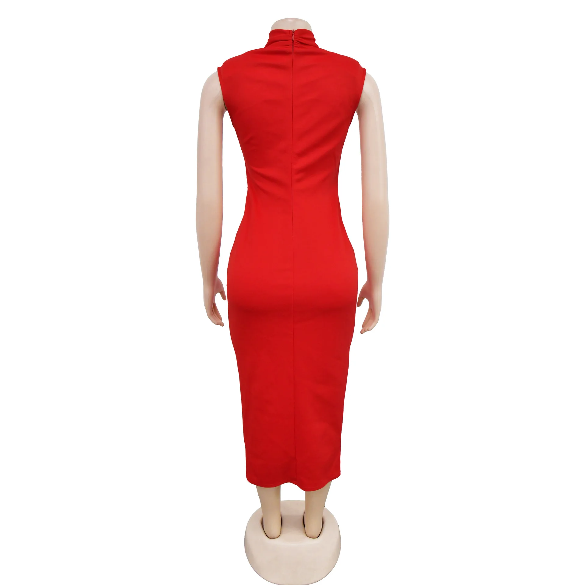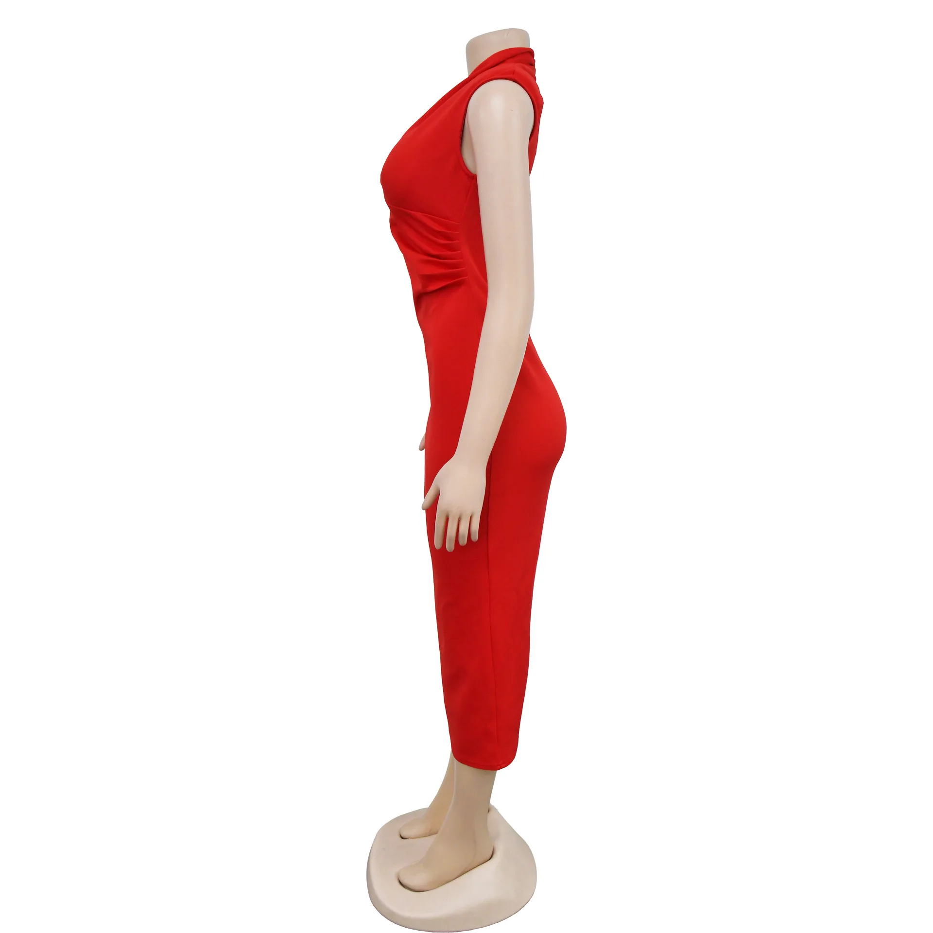 Fashion Women'S Solid Color Deep V Sleeveless Pleated Long Casual Dresses