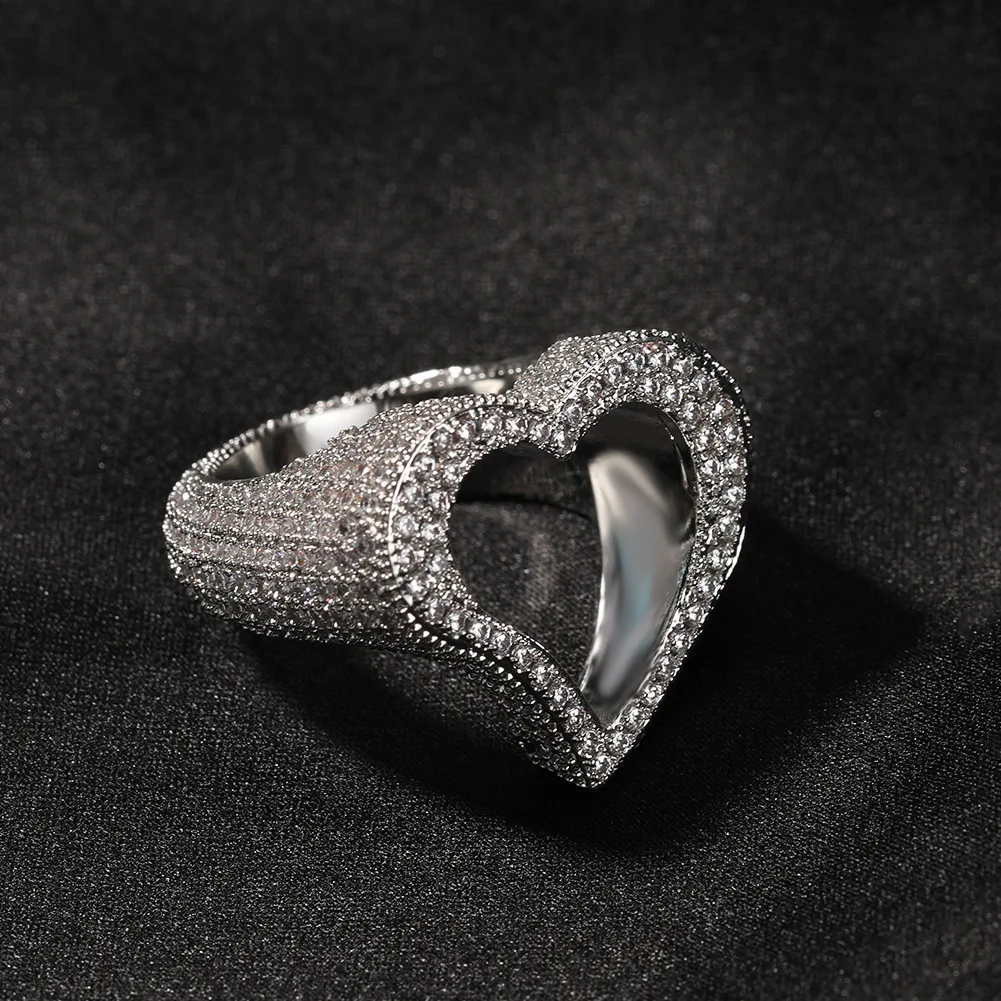 Iced Out Micro Paved Cubic Zircon Chunky Hollow Heart Ring